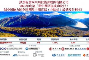 川投能源成功發(fā)行15億元中期票據(jù)創(chuàng)全國(guó)地方國(guó)企同期限中期票據(jù)(非貼標(biāo))最低發(fā)行利率