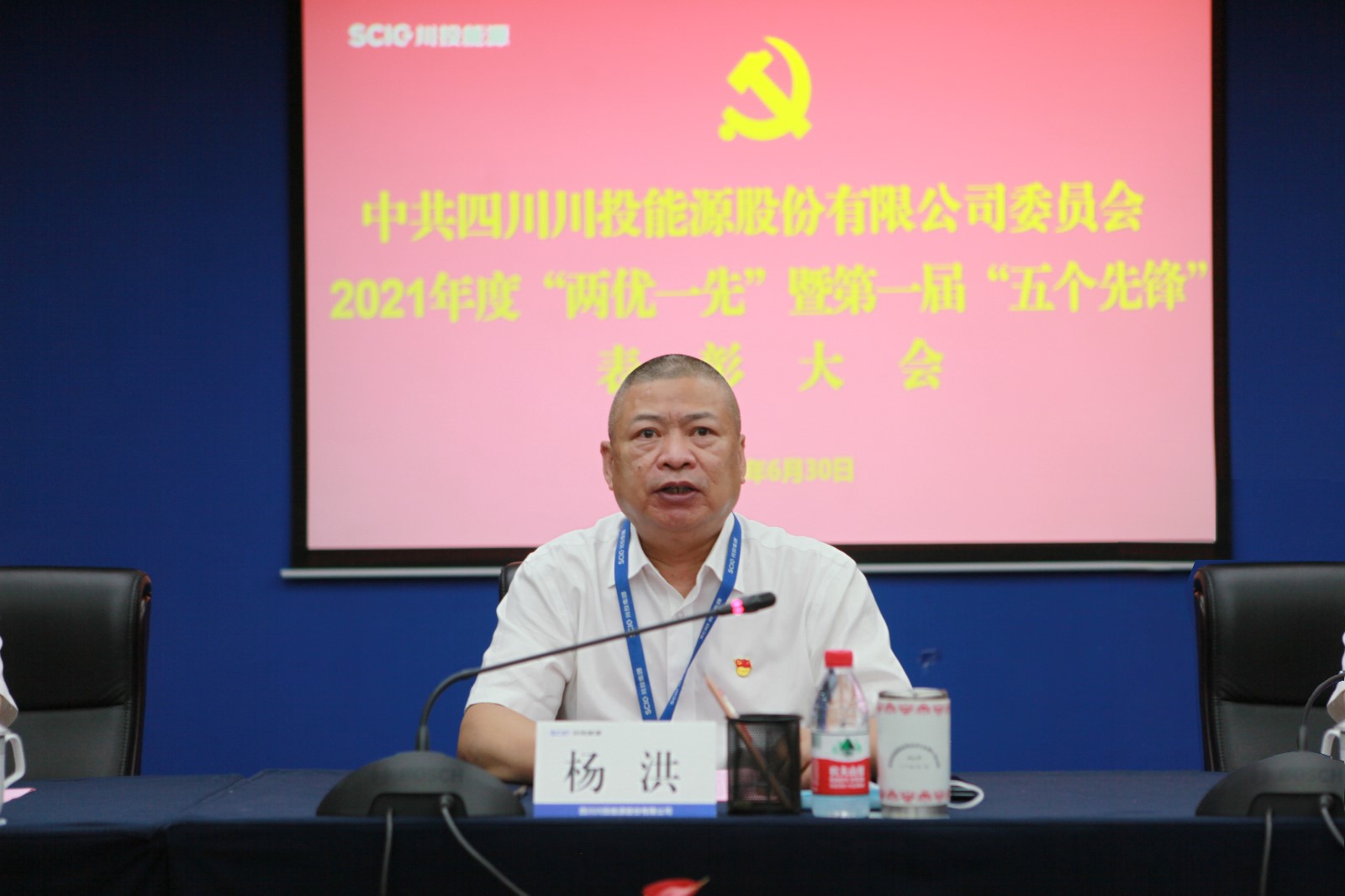 為深入學(xué)習(xí)貫徹習(xí)近平總書(shū)記來(lái)川視察重要指示精神,熱烈慶祝中國(guó)共產(chǎn)黨成立101周年,表彰公司改革發(fā)展中涌現(xiàn)出的優(yōu)秀黨員、優(yōu)秀黨務(wù)工作者、先進(jìn)基層黨組織和“五個(gè)先鋒”,6月30日,川投能源黨委召開(kāi)川投能源2021年度“兩優(yōu)一先”暨第一屆“五個(gè)先鋒”表彰大會(huì)。公司黨委書(shū)記、副董事長(zhǎng)、總經(jīng)理?xiàng)詈槌鱿⒅v話(huà),黨委副書(shū)記、工會(huì)主席冉蘭平主持會(huì)議。