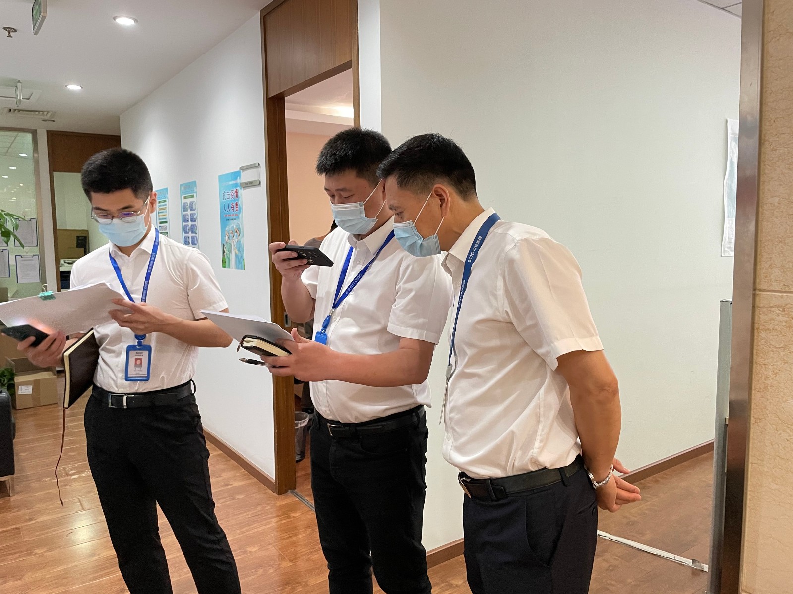 冉蘭平一行首先對川投電力的辦公區(qū)域、公共區(qū)域等關(guān)鍵點位進(jìn)行了檢查,并詳細(xì)查看了防疫物資儲備情況、疫情防控工作臺賬、人員健康登記臺賬,詢問了個別“黃碼”人員和“軌跡重疊”人員的核酸檢測情況和居家辦公情況等。隨后,冉蘭平一行又采取“掃樓”方式,對川投大廈6樓、9樓各辦公室的疫情防控工作落實情況進(jìn)行逐個督查檢查。