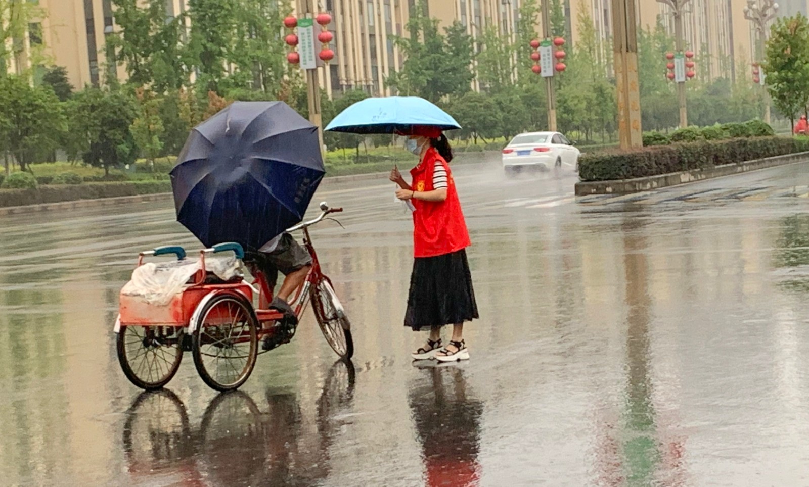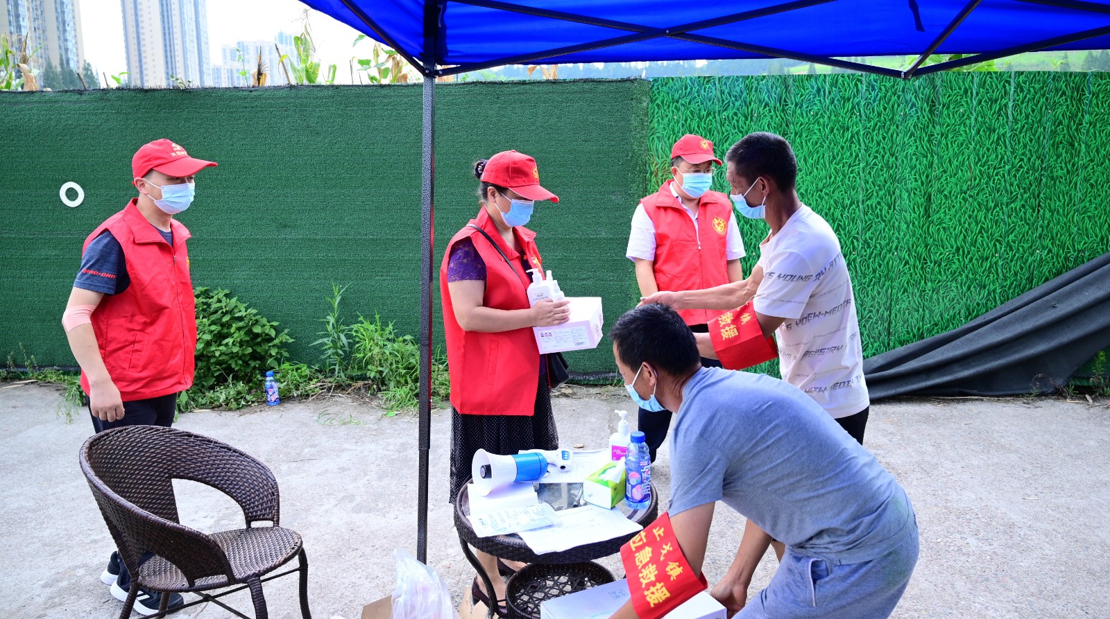 烈日高溫使豆大的汗珠從謝愛東的額頭不斷滑落,每當(dāng)其他志愿者提出換她休息時,“沒問題,我可以的”便是不變的回應(yīng)?!芭c家鄉(xiāng)人民一道共度難關(guān),哪怕再熱、再苦、再累都值得。”