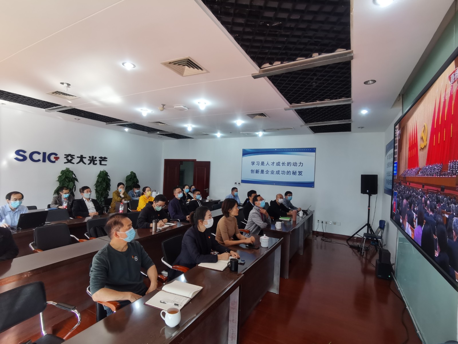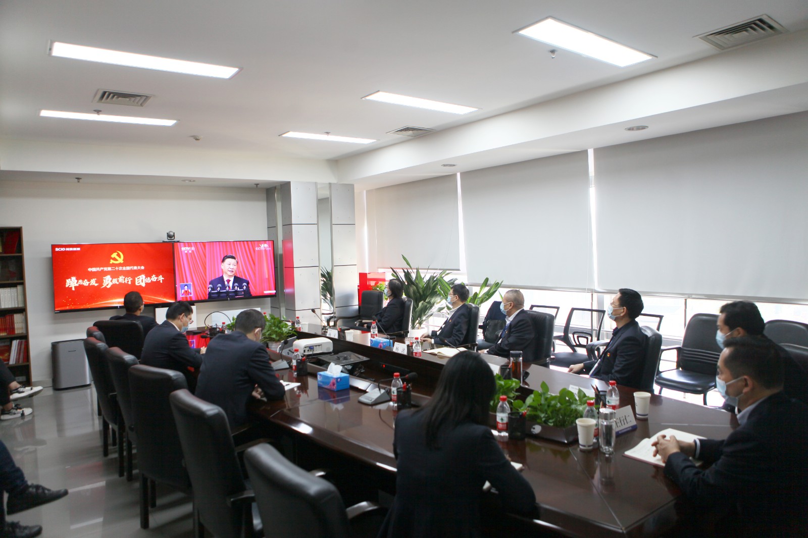 川投能源班子成員與本部各部門負責人、黨員代表一同收看了黨的二十大開幕會盛況。