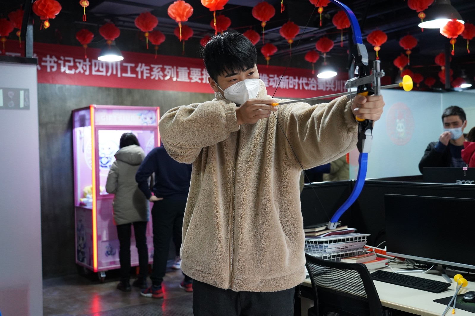 玉兔賀歲迎新年,生肖兔的形象自然成為新年中不可或缺的元素。在非遺體驗(yàn)區(qū)和新年祈福區(qū),傳統(tǒng)剪紙、春聯(lián)、燈籠技藝與生肖兔的結(jié)合,更是把中華傳統(tǒng)文化體現(xiàn)得淋漓盡致。精美剪紙活靈活現(xiàn)、揮毫潑墨筆走龍蛇,大家紛紛展示自己“得意之作”,表達(dá)辭舊迎新、接祥納福的美好祝愿。而游戲互動(dòng)區(qū)的“萌力十足娃娃機(jī)”“穿越火線(xiàn)”“戰(zhàn)弓烈焰” 等趣味游戲,不僅讓大家得到了身心放松、精神愉悅,也展現(xiàn)著川投能源人的團(tuán)結(jié)協(xié)作和良好風(fēng)貌。