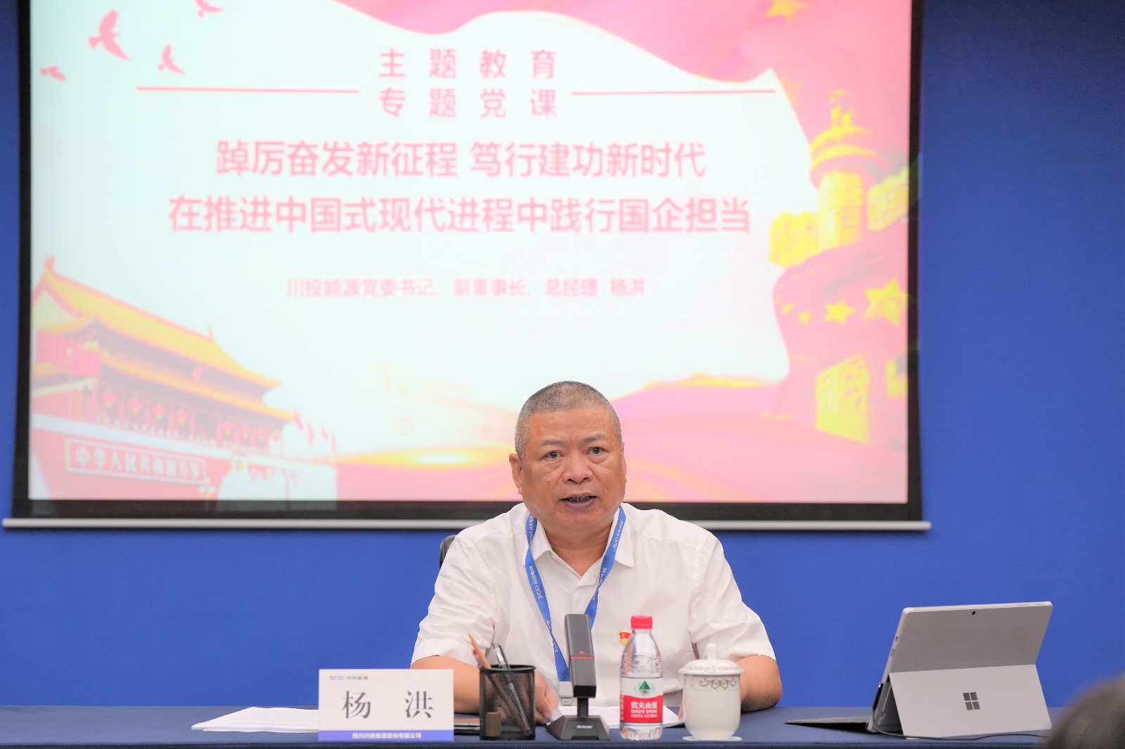 隨后,他以《踔厲奮發(fā)新征程、篤行建功新時代,在推進中國式現(xiàn)代進程中踐行國企擔當》為題,結合自身學習工作實際,從“中國式現(xiàn)代化理論體系的發(fā)展演進歷程”“認識把握中國式現(xiàn)代化的中國特色、本質(zhì)要求、重大原則”“在中國式現(xiàn)代化進程中貢獻川投能源力量”等3個部分進行講授。