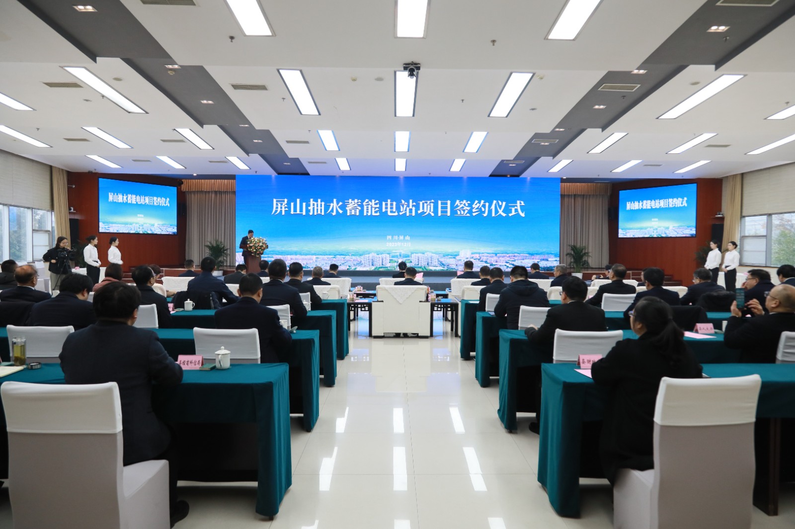 12月29日,屏山縣人民政府與四川川投能源股份有限公司、雅礱江水電開發(fā)公司、葛洲壩集團聯(lián)合體簽訂屏山抽水蓄能電站項目投資合作協(xié)議。川投集團黨委書記、董事長,川投能源董事長吳曉曦;川投集團黨委副書記、副董事長、總經(jīng)理李文志;宜賓市委副書記曾令舉;市政府副市長周文宇;川投集團副總經(jīng)理張昊;葛洲壩集團三峽建設公司副總經(jīng)理許華;葛洲壩集團市場投資開發(fā)部副總經(jīng)理李博;中國電建集團成勘院副總經(jīng)理鞠其鳳;川投能源黨委書記、副董事長、總經(jīng)理楊洪;川投集團總經(jīng)理助理、戰(zhàn)投部部長田傳平;雅礱江水電開發(fā)公司副總工程師范林;市能源局副局長邵睿;屏山縣委書記代軍;縣委副書記、縣長趙丹;縣人大常委會主任冷遠林;縣政協(xié)主席林敏;縣委副書記羅昕出席簽約儀式。