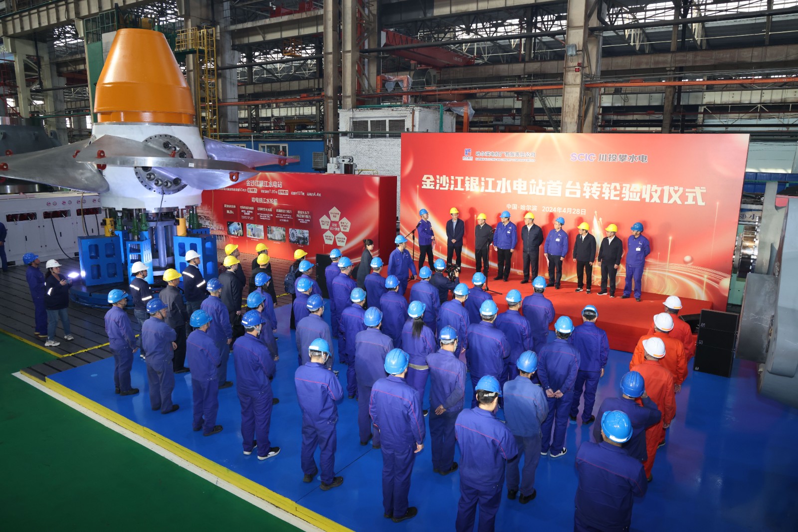 在儀式上,各方聽取了轉(zhuǎn)輪研發(fā)設(shè)計、加工制造及驗收情況,對各項技術(shù)指標(biāo)進行了現(xiàn)場檢測,均達到優(yōu)良,順利通過驗收。王貴對參加驗收的人員表示熱烈歡迎,介紹了哈電集團推進國家清潔低碳安全高效能源體系構(gòu)建和“雙碳”戰(zhàn)略目標(biāo),以及近年來哈電電機公司在原創(chuàng)技術(shù)策源地、數(shù)字化智能化、產(chǎn)能提升工程建設(shè)方面取得的重大進展,并表示川投集團與哈電集團將以銀江水電站為合作契機,繼續(xù)合力攻堅克難、勇攀行業(yè)高峰,推動中國乃至世界清潔能源裝備研發(fā)制造能力邁上新的高度,進一步深化務(wù)實合作,共謀創(chuàng)新發(fā)展,共同努力為促進經(jīng)濟社會發(fā)展全面綠色轉(zhuǎn)型、為全面建設(shè)社會主義現(xiàn)代化強國貢獻力量。