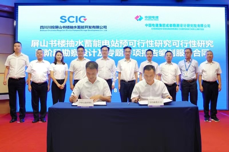 8月26日,川投能源所屬四川川投屏山書樓抽水蓄能開發(fā)有限公司(以下簡稱“川投屏山抽蓄公司”)與中國電建集團(tuán)成都勘測設(shè)計(jì)研究院有限公司(以下簡稱“中國電建成都院”)在成都舉行《屏山書樓抽水蓄能電站預(yù)可行性研究、可行性研究兩階段勘察設(shè)計(jì)及專題專項(xiàng)報(bào)告編制服務(wù)合同》簽約儀式。川投集團(tuán)黨委書記、董事長,川投能源董事長吳曉曦,中國電建成都院黨委書記、董事長何彥鋒出席并見證簽約;川投集團(tuán)副總經(jīng)理張昊,中國電建成都院黨委委員、副總經(jīng)理趙曉峰出席并致辭;川投集團(tuán)副總經(jīng)理肖長青出席并主持儀式。