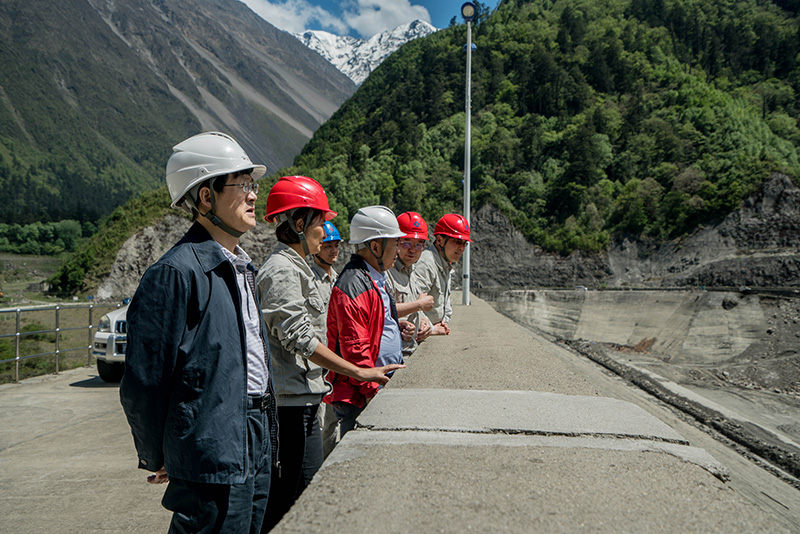 2018年5月24日,川投能源黨委書記、總經(jīng)理?xiàng)詈槁庶h委委員、副總經(jīng)理?xiàng)钇降纫恍腥烁疤餅澈庸鹃_(kāi)展汛期安全生產(chǎn)和環(huán)境保護(hù)工作檢查。田灣河公司總經(jīng)理李紅、總工程師熊宇及相關(guān)部門負(fù)責(zé)人陪同檢查。