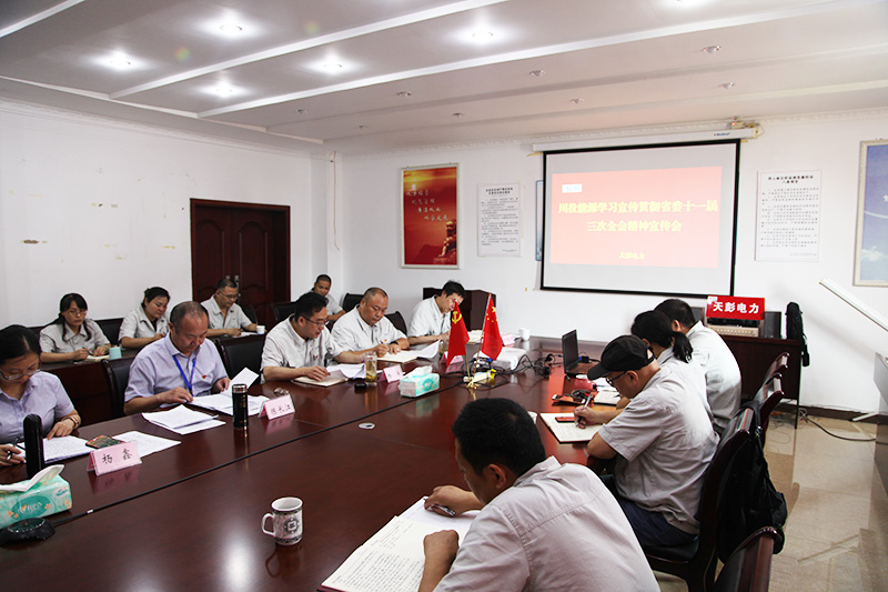 為推動省委十一屆三次全會精神宣貫活動深入開展,確保省委決策部署不折不扣落到實(shí)處, 8月8日,按照川投能源黨委的統(tǒng)一部署,黨委副書記、工會主席陳長江率黨群部副主任楊鑫一行赴天彭電力宣講省委十一屆三次全會精神,為天彭電力黨員干部和員工上了一堂生動的黨課。會議由天彭電力黨總支書記、總經(jīng)理?xiàng)顫鞒郑炫黼娏θw干部、黨員和員工代表共計28人參加了宣講會。