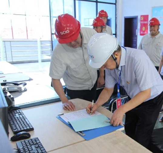 宣講會結(jié)束后,陳長江一行在楊濤的陪同下分別前往鳳鳴橋站和官田壩站生產(chǎn)現(xiàn)場,對設(shè)備運(yùn)行、環(huán)境保護(hù)措施、防洪物資準(zhǔn)備、汛期帶班領(lǐng)導(dǎo)值班情況、運(yùn)行記錄、“兩票三制”執(zhí)行等情況進(jìn)行了檢查。