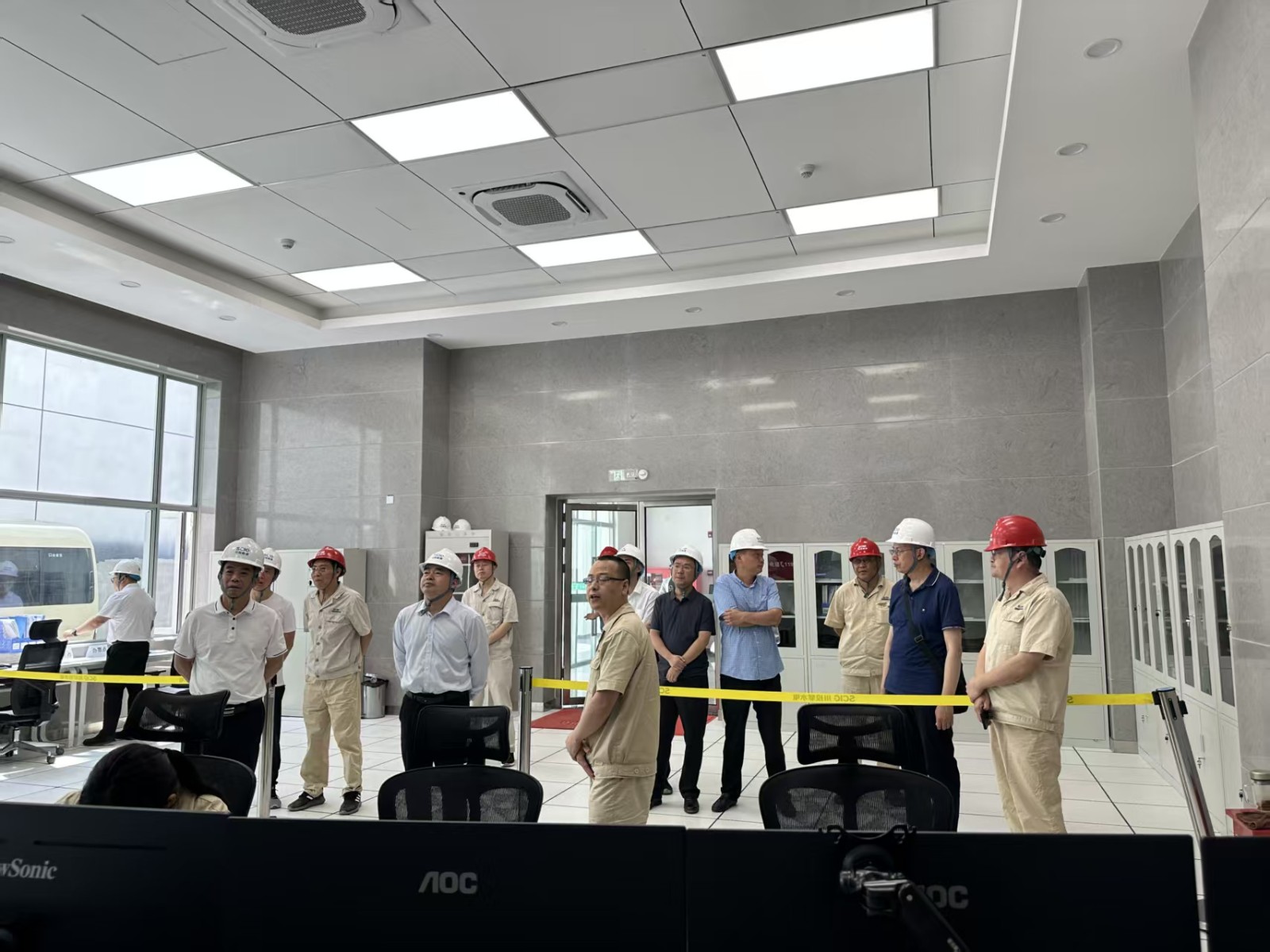 符定平一行深入施工現(xiàn)場(chǎng),在施工變電站聽取了銀江水電站工程建設(shè)、生產(chǎn)經(jīng)營(yíng)、安全生產(chǎn)、防汛減災(zāi)等工作開展情況,檢查了35KV施工變電站、縱向圍堰、大壩壩頂、尾水啟閉機(jī)室、中控室等區(qū)域的安全警示設(shè)施及安全運(yùn)行狀態(tài)。