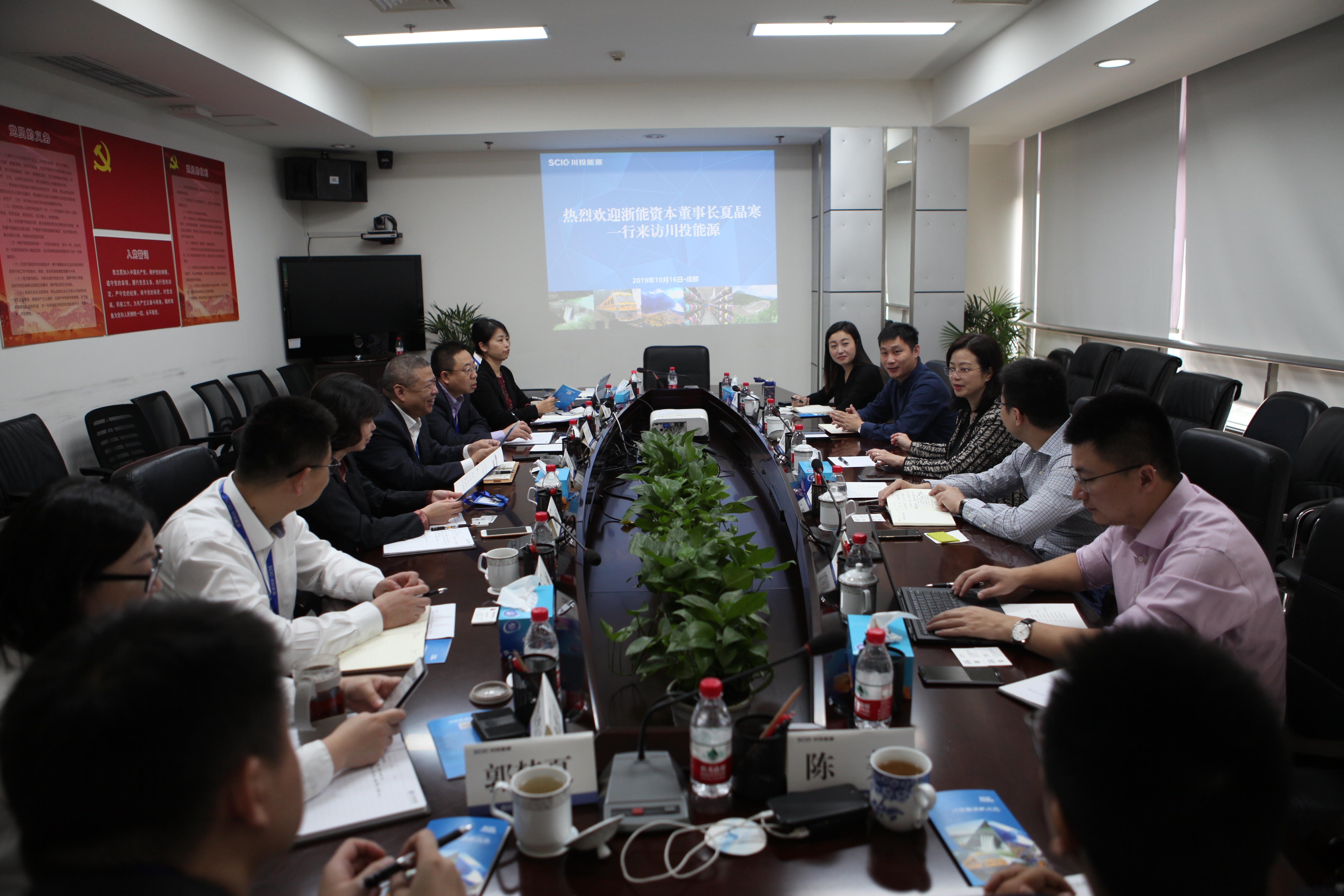 10月16日,浙能資本董事長(zhǎng)夏晶寒一行來(lái)訪川投能源,雙方重點(diǎn)圍繞基金投資和新能源項(xiàng)目合作事宜進(jìn)行了溝通探討。川投能源黨委書記、總經(jīng)理?xiàng)詈?,副總?jīng)理肖長(zhǎng)青,黨委委員、財(cái)務(wù)總監(jiān)劉好,董事會(huì)秘書龔圓,副總法律顧問、審計(jì)法務(wù)部經(jīng)理張軻,浙能資本總會(huì)計(jì)師馮駿出席座談。