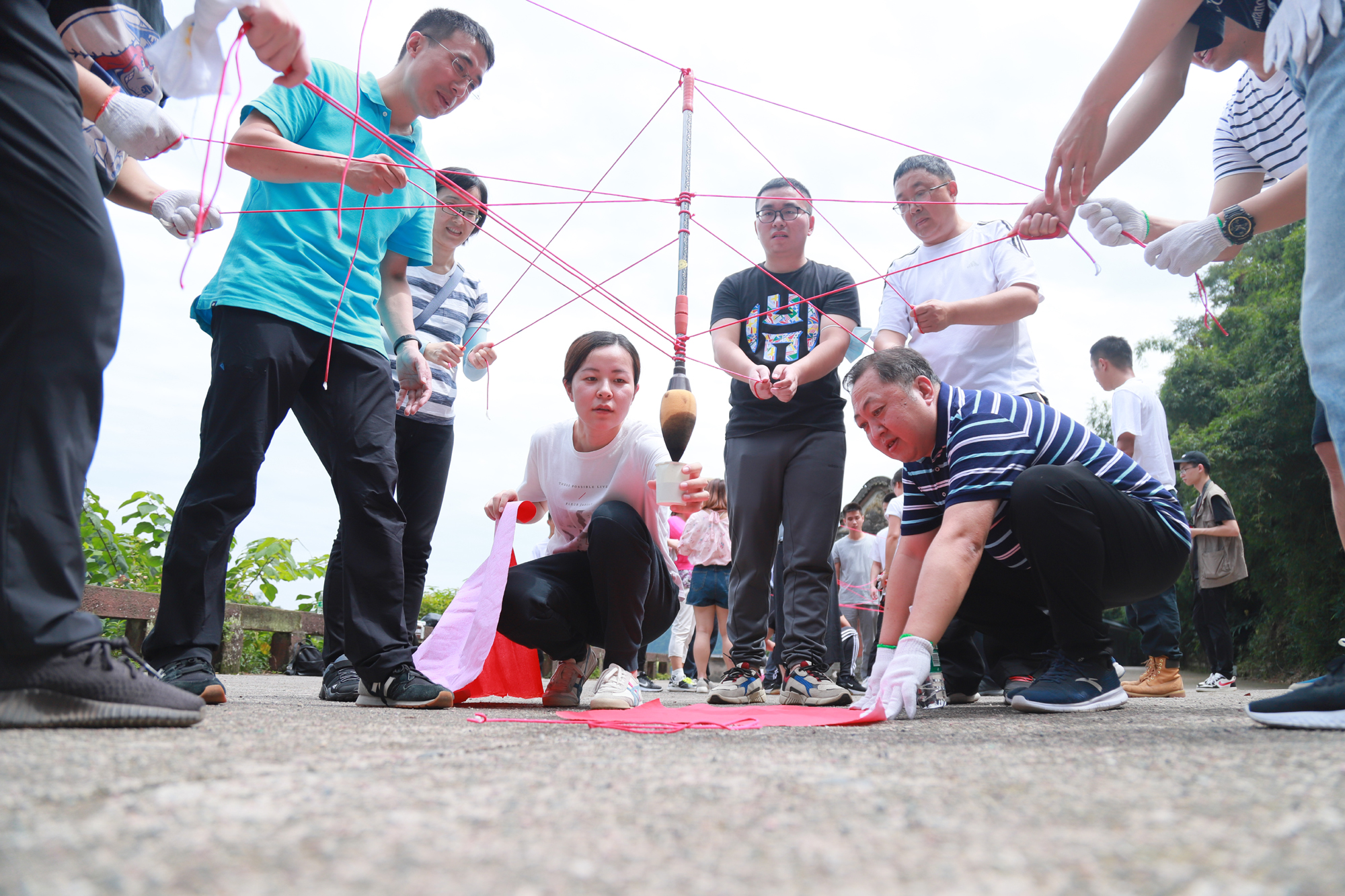 “人心齊,泰山移”。在“書(shū)寫(xiě)傳奇”環(huán)節(jié),小組每個(gè)成員拉住綁有大毛筆的繩子末端,通力協(xié)作配合完成指定書(shū)寫(xiě)文字,深刻啟發(fā)大家在工作中不僅要做好崗位工作,恪盡職守,還有學(xué)會(huì)合理分工,靈活變通,營(yíng)造互幫互助、唇亡齒寒的全局觀念,為了團(tuán)隊(duì)目標(biāo)最終達(dá)成及時(shí)協(xié)作調(diào)整、鍥而不舍。“流血流汗不流淚,掉皮掉肉不掉隊(duì)”。在“飛奪瀘定橋”環(huán)節(jié),教練給各組分發(fā)隊(duì)員人數(shù)一半的泡沫墊,要求從起點(diǎn)出發(fā),借助泡沫墊且腳不觸地的情況下,全組隊(duì)員“一個(gè)都不能少”全數(shù)到達(dá)終點(diǎn)。各小組以斷金碎石的精神,堅(jiān)定信念,持續(xù)超越;在無(wú)障礙溝通的氛圍中感受眾人合力,不斷突破,熔煉團(tuán)隊(duì)。