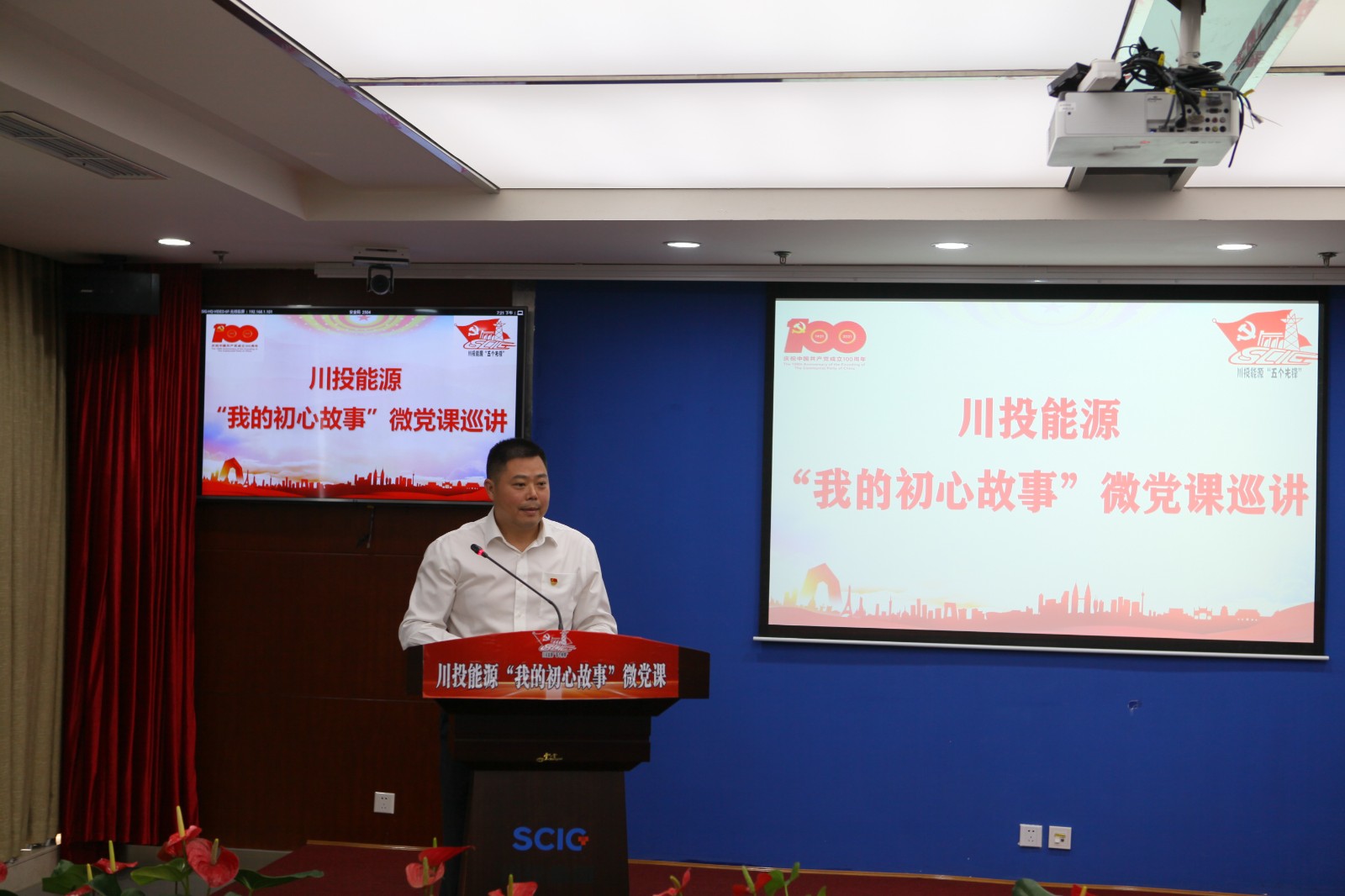 5月28日上午,川投能源“我的初心故事”微黨課巡講活動最后一站來到601會議室,為公司本部全體黨員職工帶來一場別開生面的黨課教育?;顒右砸曨l方式連線公司所屬各單位分會場。集團(tuán)公司黨群工作部部長張碧波,公司黨委書記、副董事長、總經(jīng)理?xiàng)詈榧霸诩翌I(lǐng)導(dǎo)班子成員,本部及所屬各單位黨員職工共計(jì)200余人聆聽黨課巡講。