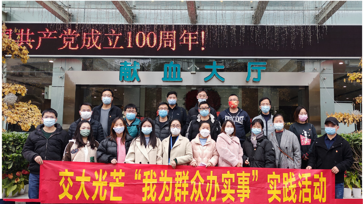 自開展黨史學(xué)習(xí)教育以來,交大光芒黨總支始終牢樹以人民為中心的發(fā)展思想,堅持將學(xué)習(xí)成效轉(zhuǎn)化為工作實效,扎實開展“我為群眾辦實事”實踐活動,切實推動“科創(chuàng)光芒”黨建品牌建設(shè)工作橫向到邊,縱向到底。12月6日,公司黨總支開展“我為群眾辦實事 暖心獻(xiàn)血鑄初心”無償獻(xiàn)血主題黨日活動,由公司黨員干部和普通員工組成的志愿者服務(wù)隊參加本次活動。