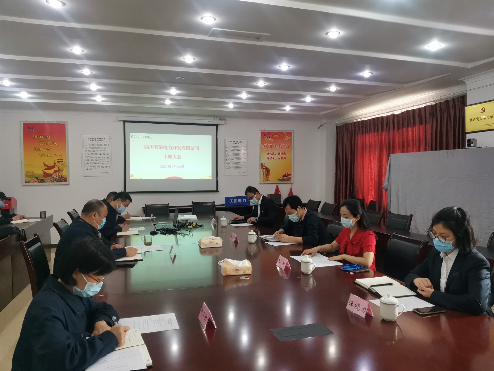 4月24日,天彭電力召開公司干部大會(huì),川投能源黨委委員、紀(jì)委書記戴月洪、人力資源部經(jīng)理王歆、紀(jì)檢工作部副主任肖堯出席大會(huì),天彭電力領(lǐng)導(dǎo)班子成員、中層以上干部參加會(huì)議,會(huì)議由王歆主持。