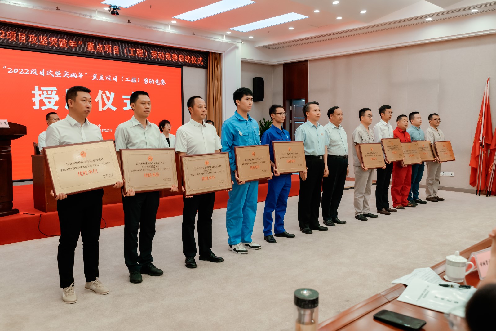 啟動儀式上,市總工會授予金沙江銀江水電站等項目(工程)為“2021年度攀枝花市重點項目(工程)勞動競賽優(yōu)勝單位”稱號,并為金沙江銀江水電站等“2022項目攻堅突破年”重點項目(工程)授旗,鼓舞大家加速建設、實現(xiàn)突破、取得實效。