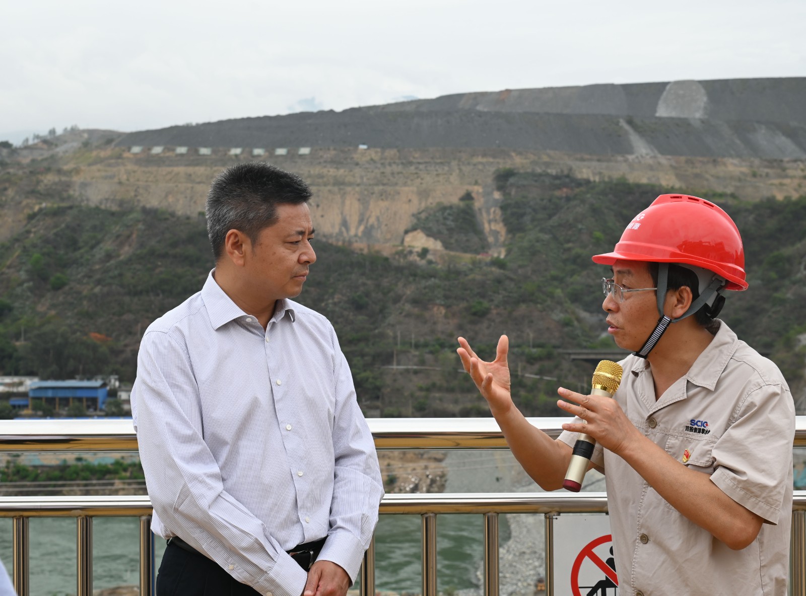 在施工變電站觀景平臺,徐孝剛詳細匯報了銀江水電站工程建設、防洪度汛、地災隱患排查治理、防洪搶險應急演練及庫區(qū)防護工程施工等方面工作情況,重點介紹了二期基坑、銀江大橋及庫區(qū)防護工程等重要部位汛期注意事項,仔細講解了各部位防洪度汛應急處置流程。