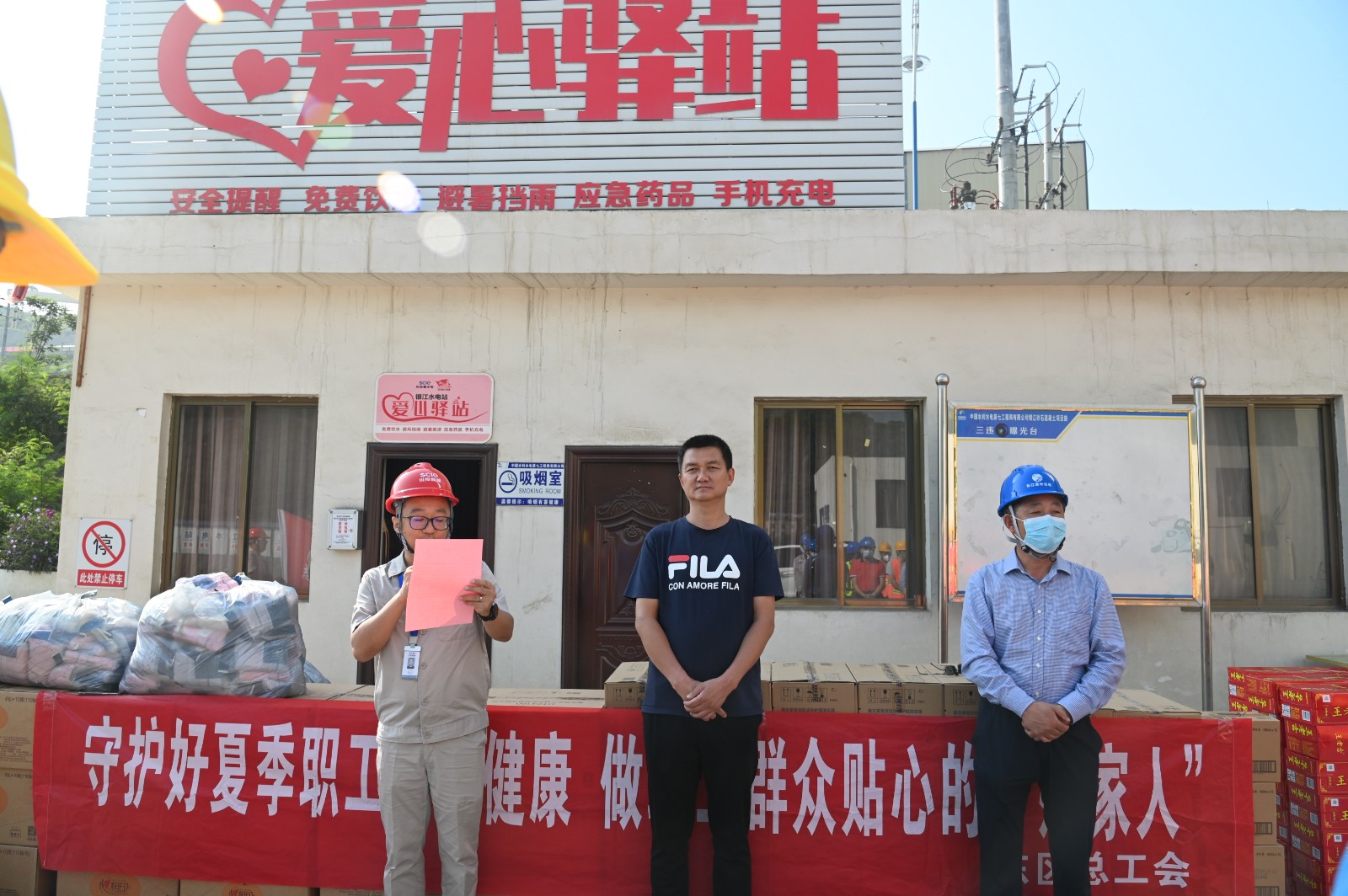 連日來(lái),攀枝花持續(xù)高溫,氣溫屢屢突破34℃高溫,7月8日上午,為切實(shí)維護(hù)銀江水電站一線工作者身體健康和合法利益,把關(guān)懷送到每一位工友身邊,攀枝花市東區(qū)總工會(huì)赴銀江水電站工地開(kāi)展送清涼慰問(wèn)活動(dòng),東區(qū)總工會(huì)維權(quán)工作部部長(zhǎng)劉欣,長(zhǎng)江設(shè)計(jì)集團(tuán)銀江項(xiàng)目常務(wù)副經(jīng)理、設(shè)總、設(shè)代處長(zhǎng)汪慶元,公司志愿者服務(wù)隊(duì)參加慰問(wèn),公司黨總支委員、董事會(huì)秘書、工會(huì)主席鄧勇主持活動(dòng)。