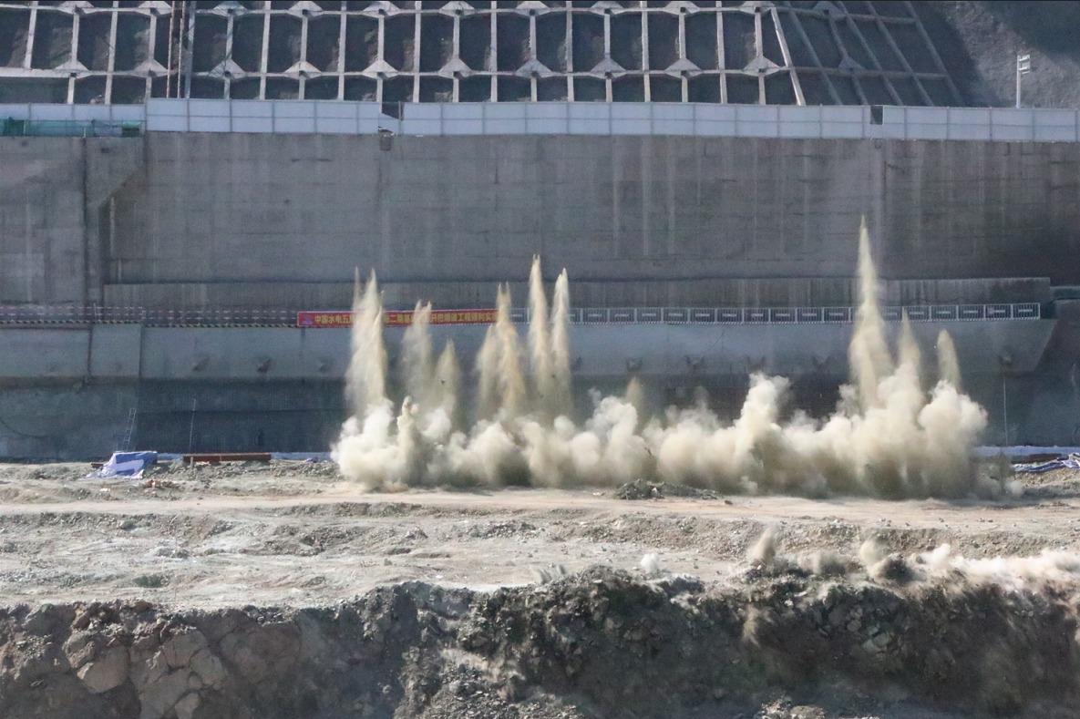銀江水電站位于攀枝花市主城區(qū),二期基坑開(kāi)挖施工外圍邊界條件復(fù)雜,左右岸各存在一條出入攀枝花市交通主干道(國(guó)道),此外,成昆鐵路渡口支線緊鄰左岸邊坡及二期基坑爆破區(qū),爆破施工屬涉鐵工程,爆破前需要辦理相關(guān)手續(xù)。公司先后多次組織參建單位召開(kāi)專題會(huì)議研究涉鐵爆破事宜,施工單位積極落實(shí)審批備案手續(xù),多次往返于成都和攀枝花之間,歷經(jīng)曲折,終于在7月取得了鐵路、公安等主管部門批準(zhǔn),8月13日16點(diǎn)30分,隨著一聲巨響,二期基坑土石方開(kāi)挖成功迎來(lái)“首爆”,主體工程建設(shè)正式邁入“快車道”。