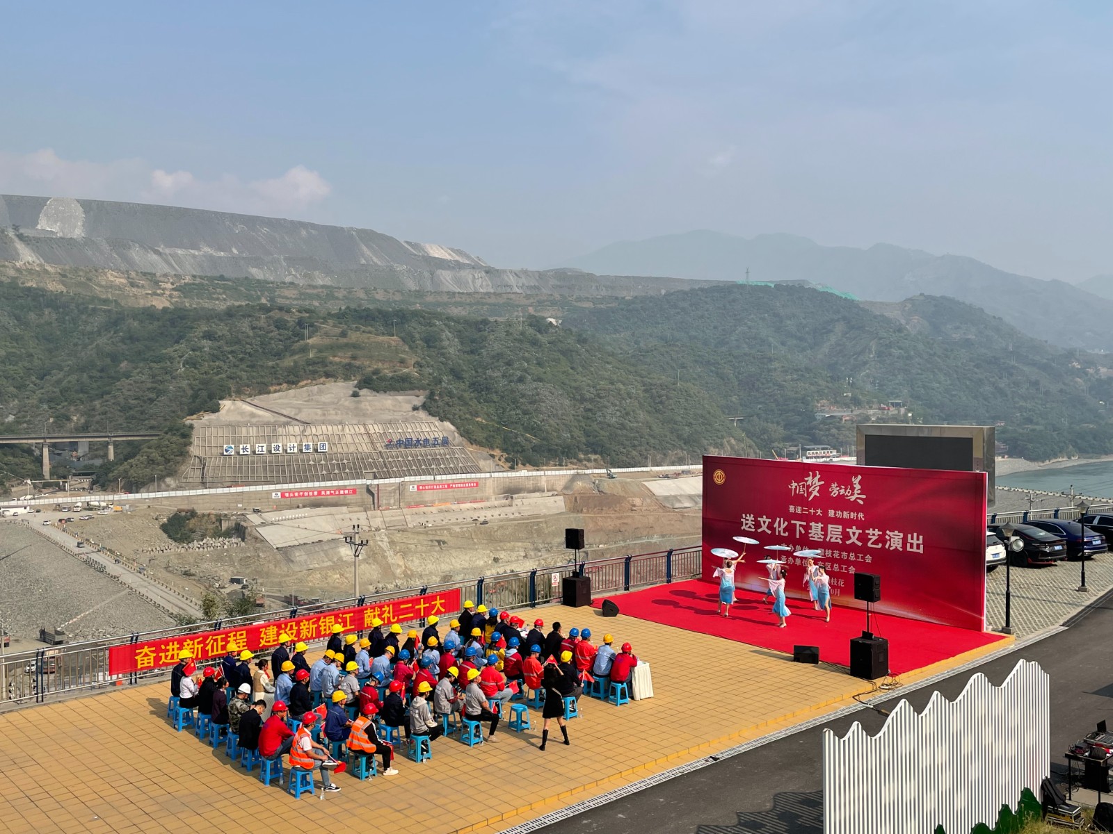 10月19日上午,黨的二十大勝利召開之際,由攀枝花市總工會主辦、東區(qū)總工會承辦、攀水電公司工會協(xié)辦的“中國夢·勞動美——喜迎二十大、建功新時代”文藝演出在銀江水電站七色陽光大黨建宣傳陣地拉開帷幕。攀水電黨總支副書記、董事會秘書、工會主席鄧勇、副總經(jīng)理唐伽、攀新能源公司總經(jīng)理助理王鵬志等出席了本次活動。按疫情防控要求,長江設計公司、貴陽院監(jiān)理、二灘建設監(jiān)理、華東院監(jiān)理、水電五局、水電七局、水電十局、四川路橋、實驗中心等參建單位的40余名職工代表現(xiàn)場觀看演出。