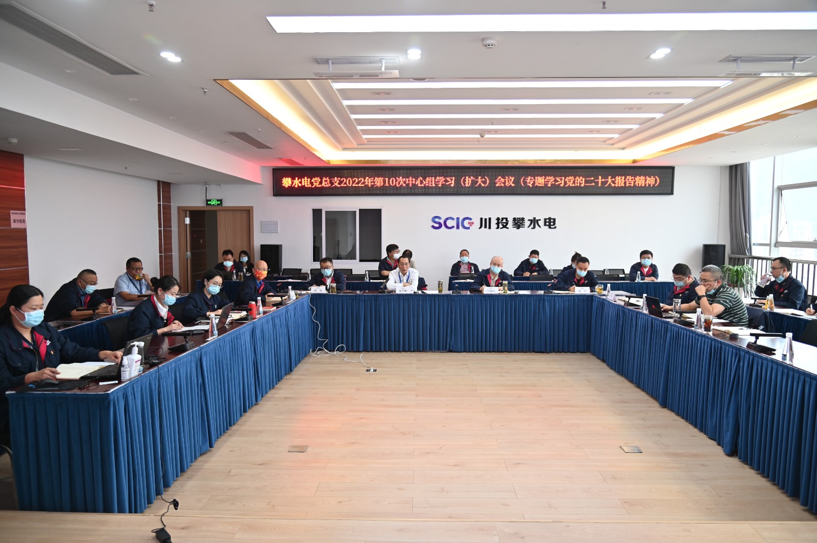 10月22日上午,在黨的二十大勝利閉幕之際,攀水電公司黨總支在2620會議室召開了2022年第10次中心組(擴大)學習會議,專題學習習近平總書記在中國共產(chǎn)黨第二十次全國代表大會上的報告。會議由川投能源副總經(jīng)理、攀水電公司黨總支書記、董事長、攀新能源公司董事長徐孝剛主持,公司黨總支中心組成員、聯(lián)建支部書記、其他黨員、統(tǒng)戰(zhàn)對象、入黨積極分子共40余人參加學習。