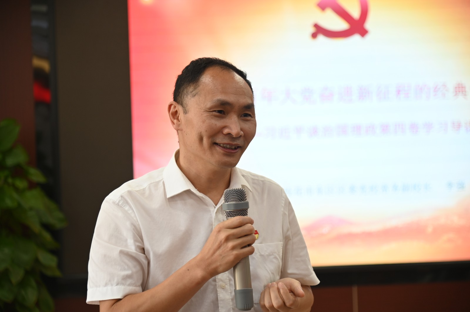 李校長講到《習(xí)近平談治國理政》第四卷是集中展現(xiàn)了馬克思主義中國化時代化的最新成果,是全面系統(tǒng)反映習(xí)近平新時代中國特色社會主義思想,引領(lǐng)百年大黨新征程的經(jīng)典論著。對于推動廣大黨員干部群眾進一步增強學(xué)思想、悟思想、用思想的自覺性堅定性,不斷提高政治判斷力、政治領(lǐng)悟力、政治執(zhí)行力,在新時代新征程上團結(jié)奮斗、勇毅前行,具有重要意義。