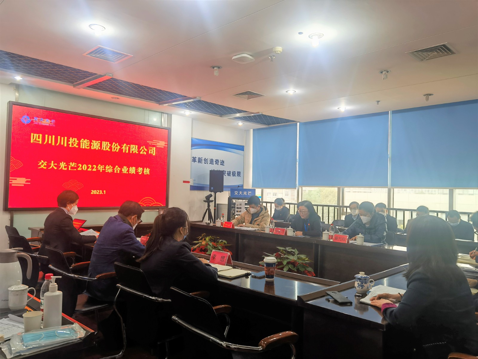 根據(jù)川投能源考核工作的統(tǒng)一部署,1月11日,川投能源考核組長、董事會秘書魯晉川率隊赴交大光芒開展2022年度綜合業(yè)績考核工作,通過聽取述職述責(zé)述廉報告、民主測評、個別談話和現(xiàn)場實地察看核實等環(huán)節(jié),對交大光芒進(jìn)行了全面考核。魯晉川主持召開此次考評會,交大光芒經(jīng)營班子、中層副職以上管理人員及一線員工代表參加。
