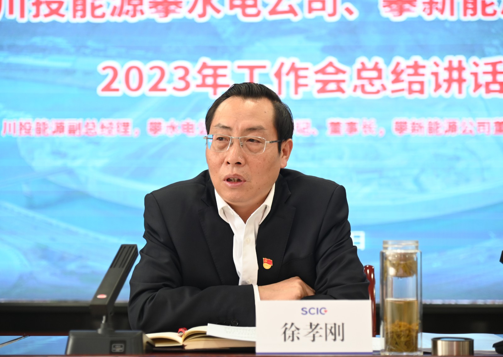 川投能源副總經(jīng)理,攀水電公司黨總支書記、董事長,攀新能源公司董事長徐孝剛作了題為《踔厲奮發(fā)踏征程,鉚足干勁拼發(fā)展》的主題講話。他表示:2022年是銀江水電站全面進入主體工程施工的關(guān)鍵之年和攀新能源公司新能源快速發(fā)展的突破之年,攀水電公司團結(jié)帶領(lǐng)各參建單位,連續(xù)克服新冠疫情多發(fā)、地質(zhì)條件復(fù)雜、砂石骨料短缺等各種影響,精心謀劃施工組織,合理調(diào)配施工資源,組織開展“決戰(zhàn)四季度、大干一百天,力爭提前完成二期基坑開挖,加快主體工程施工,獻禮二十大”等勞動競賽,確保了銀江水電站工程建設(shè)高效有序推進和公司各項年度目標(biāo)任務(wù)順利完成。攀新能源公司成功收購了廣西農(nóng)光公司51%控股權(quán),實現(xiàn)了新能源光伏大型控股項目的重大“破冰”;完成了攀枝花郵處中心首個自主開發(fā)新能源項目的建設(shè)投運,實現(xiàn)了分布式光伏項目從“0”到“1”的關(guān)鍵性突破;有力推動了攀新能源公司快速高質(zhì)量發(fā)展。