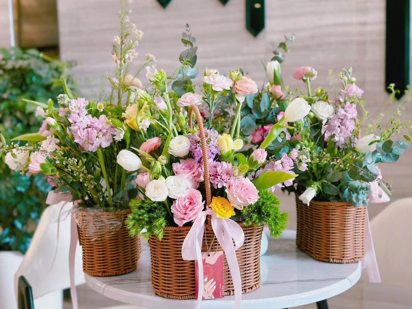 緊接著組織了DIY插花活動(dòng),邀請(qǐng)專(zhuān)業(yè)花藝師現(xiàn)場(chǎng)講解鮮花常識(shí)、色彩搭配、保鮮方法、花枝修剪和插花的基本技巧。在花藝師指導(dǎo)下,大家躍躍欲試,邊學(xué)邊交流,紛紛行動(dòng)起來(lái),開(kāi)啟鮮花“綻放”之旅,現(xiàn)場(chǎng)春意盎然、熱鬧非凡,一雙雙巧手將各色花卉配以枝葉點(diǎn)綴,讓一把把散落的花材變成了美麗靈動(dòng)又具有個(gè)性特色的花藝作品,大家喜笑顏開(kāi),擁抱著自己精心制作的花籃合影留念。