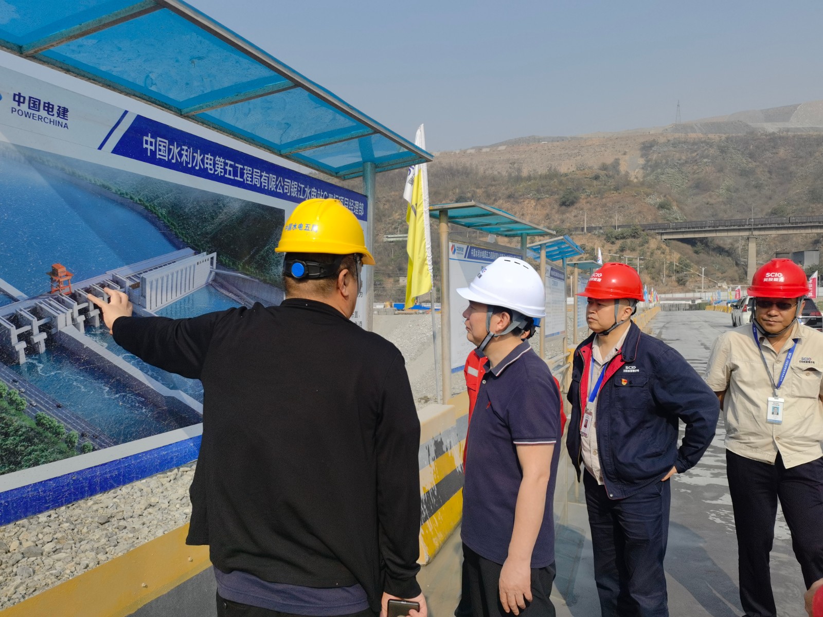 陶世賢一行在施工變電站觀景平臺聽取了目前銀江水電站工程進(jìn)展、安全文明施工、環(huán)境保護(hù),以及各單位全國“兩會”期間安全生產(chǎn)各項(xiàng)工作落實(shí)的總體情況匯報(bào);對銀江水電站拌合系統(tǒng)一次風(fēng)冷車間、上游圍堰、鋼筋加工廠進(jìn)行了檢查;長江設(shè)計(jì)介紹了根據(jù)工程進(jìn)展提供設(shè)計(jì)工程圖紙和定期提供安全風(fēng)險(xiǎn)提示等情況;水電七局負(fù)責(zé)人詳細(xì)介紹了液氨制冷系統(tǒng)的安全管控措施、維護(hù)保養(yǎng)、值班值守等工作落實(shí)情況;水電五局介紹了大壩基坑施工整體布局、混凝土澆筑施工中的模板安裝、臨時(shí)用電安全情況,在鋼筋加工廠檢查了自動化鋼筋加工設(shè)備、特種設(shè)備的管理等工作情況。