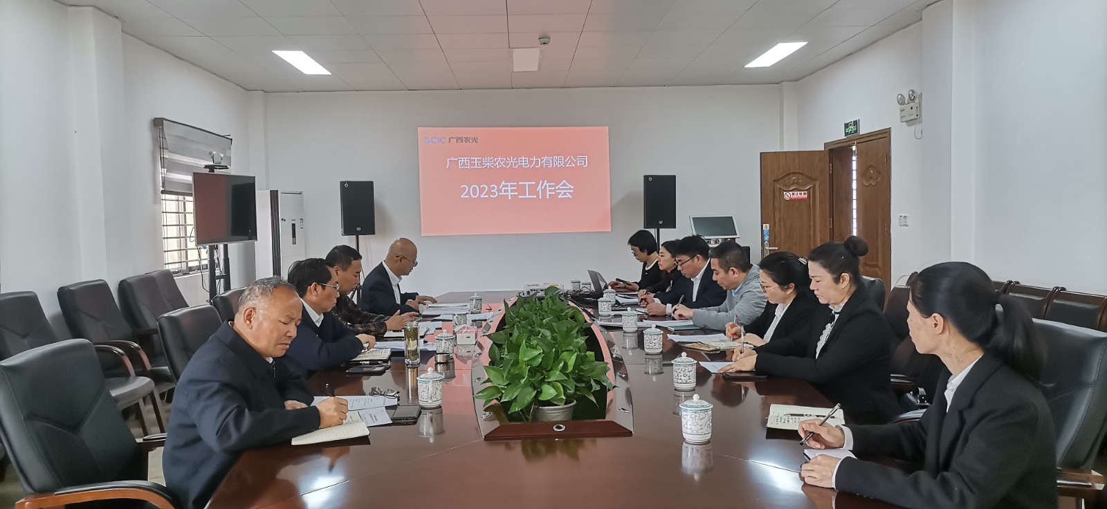 隨后,徐孝剛一行在桂平光伏電站升壓站二樓會議室召開了廣西農(nóng)光公司2023年工作會,會議由攀新能源公司公司、廣西農(nóng)光公司財務(wù)總監(jiān)王俊森主持,公司全體員工(兼職)、運(yùn)維單位代表參加會議。會議學(xué)習(xí)傳達(dá)了川投集團(tuán)、川投能源、攀新能源公司2023年工作會精神;覃鳳荏作了廣西農(nóng)光公司《2022年工作總結(jié)及2023年工作計劃》的報告,重點(diǎn)匯報了2022年度主要指標(biāo)完成情況、主要工作舉措及成效、存在的問題和困難以及2023年工作打算等;王俊森代表公司領(lǐng)導(dǎo)班子作廉潔從業(yè)公開承諾;公司主要領(lǐng)導(dǎo)分別與部門代表簽訂了2023年《“雙廉”責(zé)任書》《部門目標(biāo)責(zé)任書》。