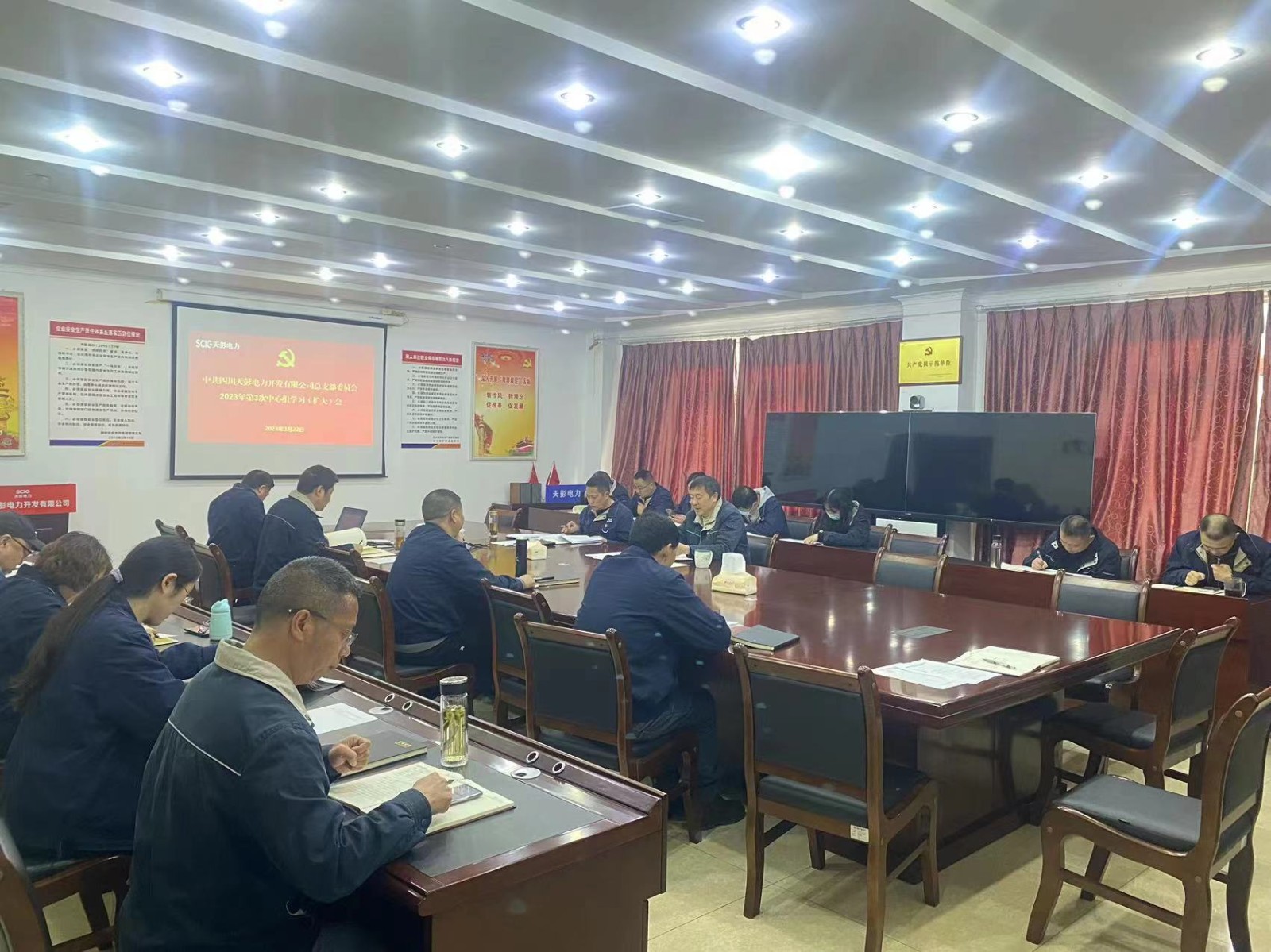 3月22日上午,川投電力黨委所屬天彭電力黨總支召開(kāi)2023年第3次黨總支理論中心組學(xué)習(xí)會(huì),專(zhuān)題學(xué)習(xí)研討全國(guó)兩會(huì)精神。公司領(lǐng)導(dǎo)、黨員干部、關(guān)鍵崗位人員參加會(huì)議,會(huì)議由公司黨總支書(shū)記、總經(jīng)理劉紅兵主持。