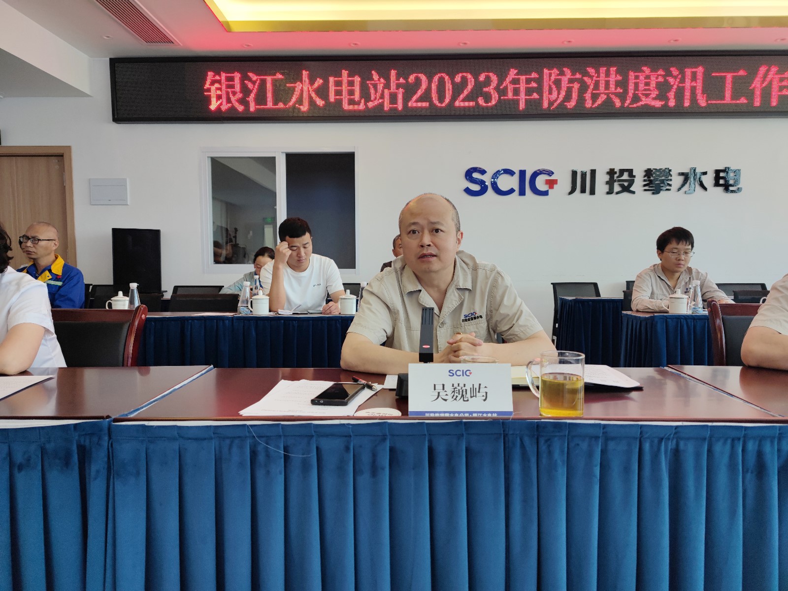 4月23日,公司組織各參建單位在2620會議室召開了銀江水電站2023年防洪度汛工作啟動會,會議由公司總經(jīng)理助理、工程管理部經(jīng)理、防汛防地災(zāi)領(lǐng)導(dǎo)小組辦公室主任嚴(yán)瑞平主持,公司黨總支副書記、總經(jīng)理、防汛防地災(zāi)領(lǐng)導(dǎo)小組組長吳巍嶼,公司黨總支委員、紀(jì)檢小組長、防汛防地災(zāi)領(lǐng)導(dǎo)小組副組長楊銳等領(lǐng)導(dǎo)出席會議。公司工程管理部、安全環(huán)保部、征地移民部部門負(fù)責(zé)人,各參建單位項目負(fù)責(zé)人、分管生產(chǎn)、安全工作負(fù)責(zé)人參加會議。