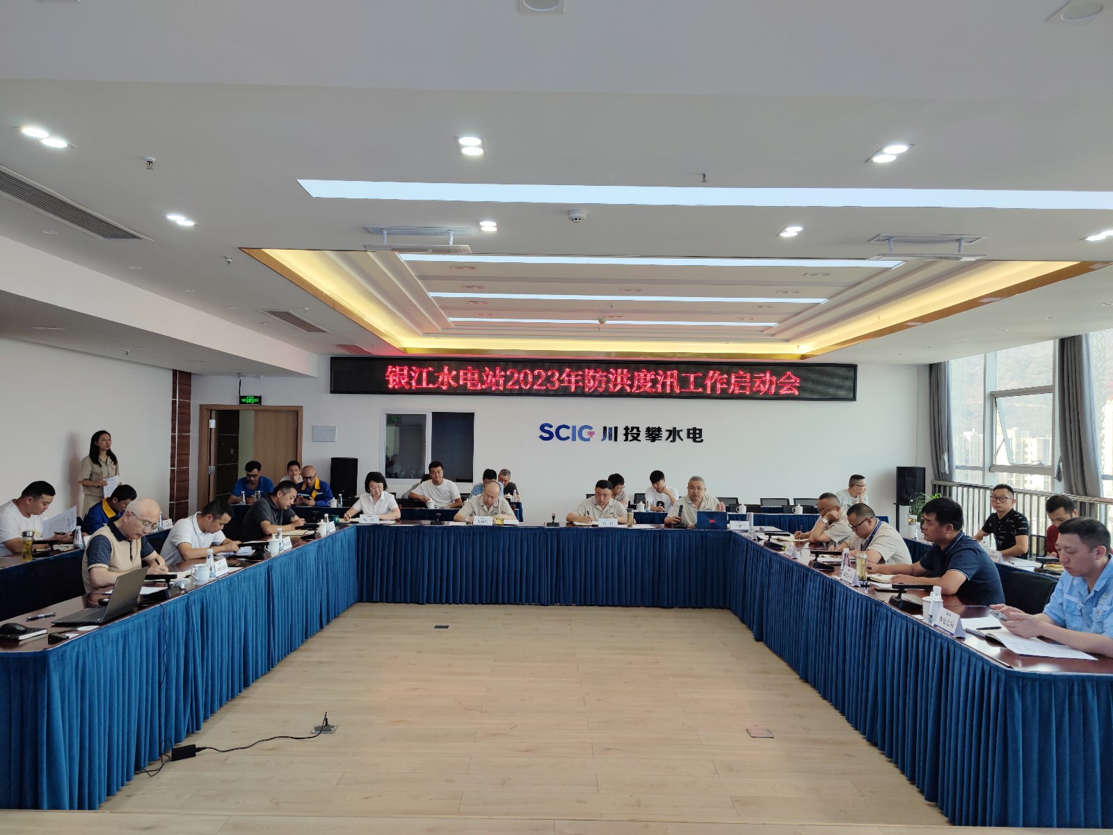 會上,楊銳傳達(dá)學(xué)習(xí)了《四川省能源局關(guān)于切實做好2023年能源項目建設(shè)汛前準(zhǔn)備工作的通知》,公司工程管理部匯報了公司2023年防洪度汛準(zhǔn)備工作情況,并對防洪度汛工作作了具體安排,嚴(yán)瑞平對相關(guān)工作進(jìn)行了補充匯報。各參建單位逐一匯報了防洪度汛組織機構(gòu)、防汛值班、度汛形象面貌、地災(zāi)隱患排查整治、防洪度汛應(yīng)急演練準(zhǔn)備以及防汛物資落實等方面情況。