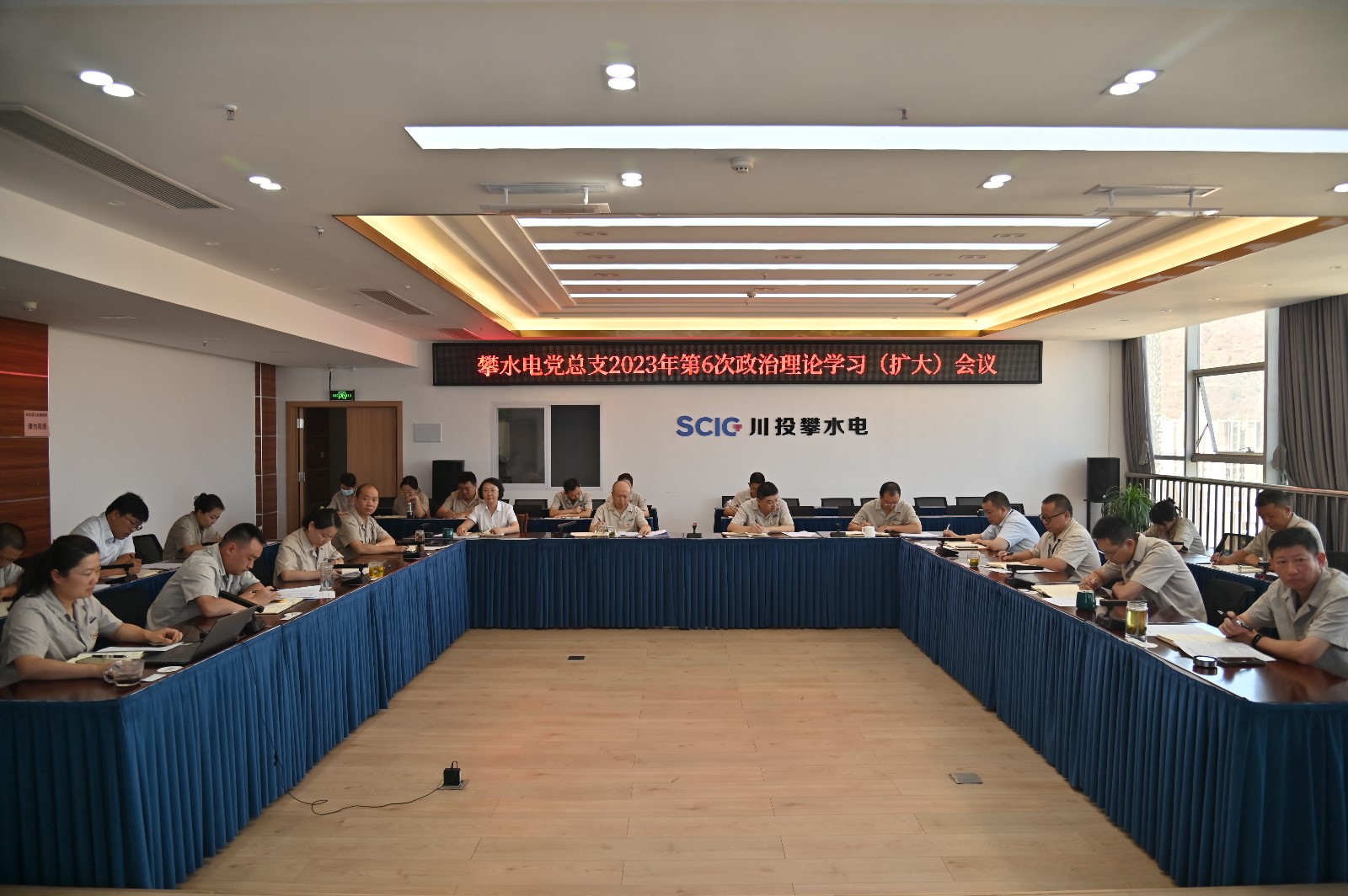 5月28日,攀水電黨總支在2620會議室召開了2023年第6次政治理論學(xué)習(xí)(擴(kuò)大)會議,本次學(xué)習(xí)主要包括第一議題學(xué)習(xí)、上級指示精神、法治專題、黨史學(xué)習(xí)教育、安全環(huán)保、廉政警示教育、主題教育專題研討七個部分。川投能源副總經(jīng)理、攀水電公司黨總支書記、董事長徐孝剛以視頻方式主持會議,黨總支政治理論學(xué)習(xí)會成員、各部門負(fù)責(zé)人、其他黨員、統(tǒng)戰(zhàn)對象、入黨積極分子共30余人參加。