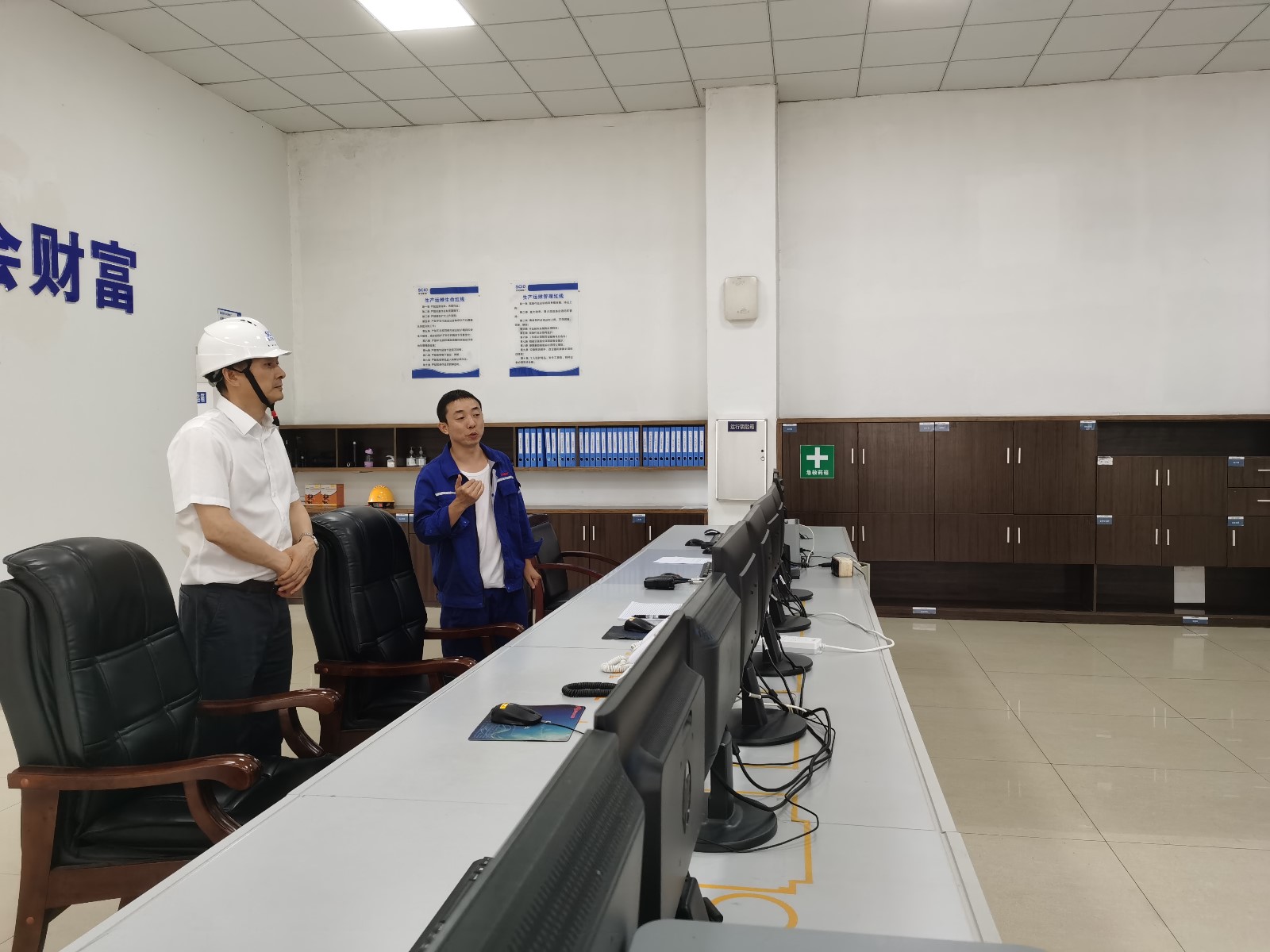在中控室,冉蘭平隨機(jī)檢驗(yàn)了電站對于“水淹廠房事故應(yīng)急預(yù)案”演練過程,針對處理事故細(xì)節(jié)提出了指導(dǎo)意見,現(xiàn)場聽取了電站負(fù)責(zé)人關(guān)于近期安全生產(chǎn)工作落實(shí)的情況匯報(bào),詳細(xì)了解當(dāng)前電力保供、特種設(shè)備運(yùn)行、機(jī)組檢修安全風(fēng)險(xiǎn)管控等情況,對做好極端高溫干旱天氣、大運(yùn)會保供等工作進(jìn)行研究部署。他指出,要持續(xù)深入學(xué)習(xí)習(xí)近平總書記關(guān)于安全生產(chǎn)工作的重要論述,緊緊圍繞“強(qiáng)責(zé)任、控風(fēng)險(xiǎn)、壓事故”工作總要求,結(jié)合各級政府、省國資委、集團(tuán)公司和川投能源對“迎大運(yùn)·保安全”集中整治專項(xiàng)行動活動的安排部署,教育引導(dǎo)廣大干部職工切實(shí)把思想統(tǒng)一到黨中央決策部署上來,把扎實(shí)做好重要時(shí)段保供工作作為一項(xiàng)重要的政治任務(wù)來抓,全力以赴保安全、保重點(diǎn)、保供電。