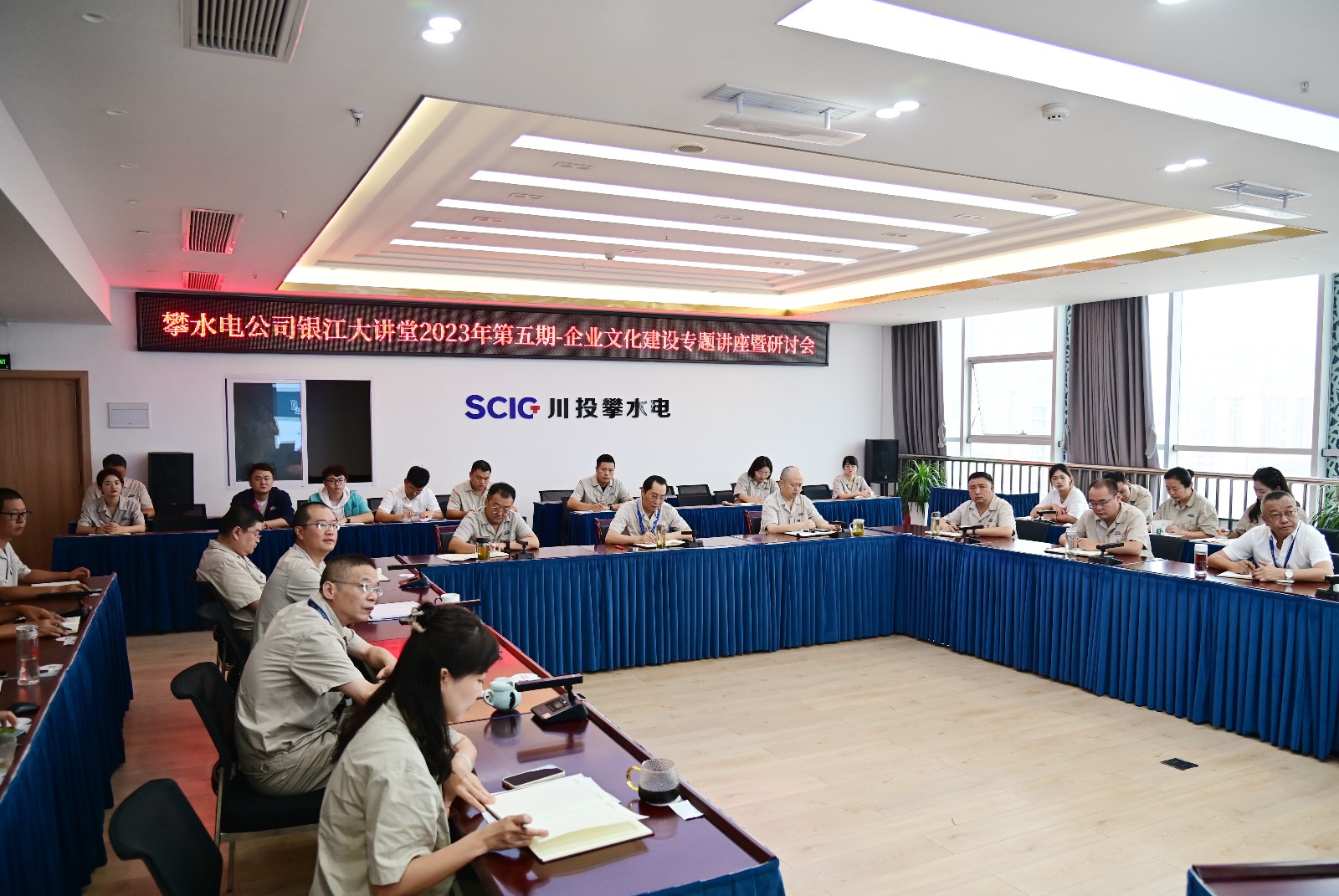 為推動學習貫徹習近平新時代中國特色社會主義思想主題教育走深走實,全面落實黨的二十大精神,堅定文化自信,不斷適應新時代國企文化建設的新形勢、新任務和新要求,充分發(fā)揮企業(yè)文化在推進企業(yè)高質量發(fā)展中的積極作用,7月30日,攀水電公司組織開展了2023年第五期銀江大講堂——企業(yè)文化建設專題講座暨研討會,會議邀請到了四川省市場監(jiān)督管理學會理事、攀枝花學院經(jīng)濟與管理學院副教授顧福珍授課。川投能源副總經(jīng)理、公司黨總支書記、董事長、企業(yè)文化建設領導小組組長徐孝剛、公司在攀領導及全體員工共計40余人參加會議。