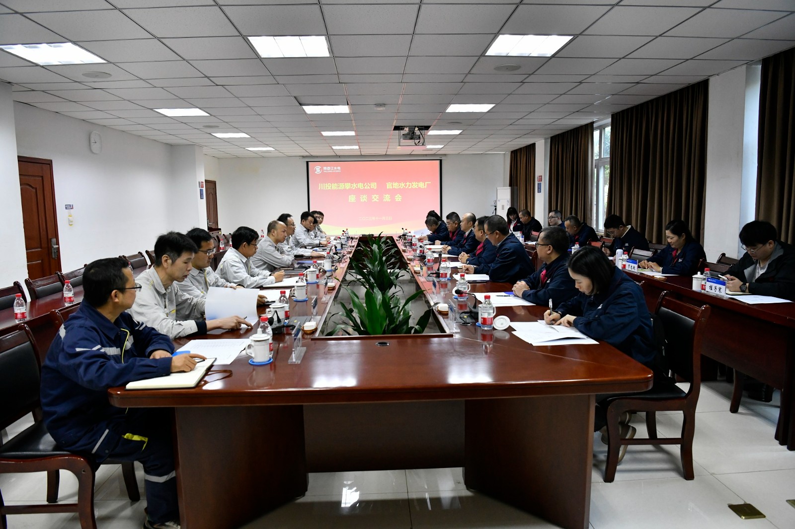 11月3日,調(diào)研組一行赴官地水電站開展調(diào)研,在電廠副廠長劉偉及相關(guān)部門負(fù)責(zé)人等陪同下,實(shí)地參觀了電廠的地下廠房、中控室、展覽廳等地并召開了交流座談會(huì),會(huì)上,官地水電站各部門就電廠的生產(chǎn)運(yùn)維、技術(shù)創(chuàng)新、生產(chǎn)與黨建融合、安全管理、青年員工培養(yǎng)、營地建設(shè)等方面分享了先進(jìn)的經(jīng)驗(yàn)并提供了寶貴的建議,此次交流學(xué)習(xí),開闊了員工視野,拓展了工作思路。吳巍嶼對官地水電站的熱情接待和專業(yè)指導(dǎo)表示感謝,并期待雙方能繼續(xù)加強(qiáng)交流,共謀合作機(jī)會(huì)。
