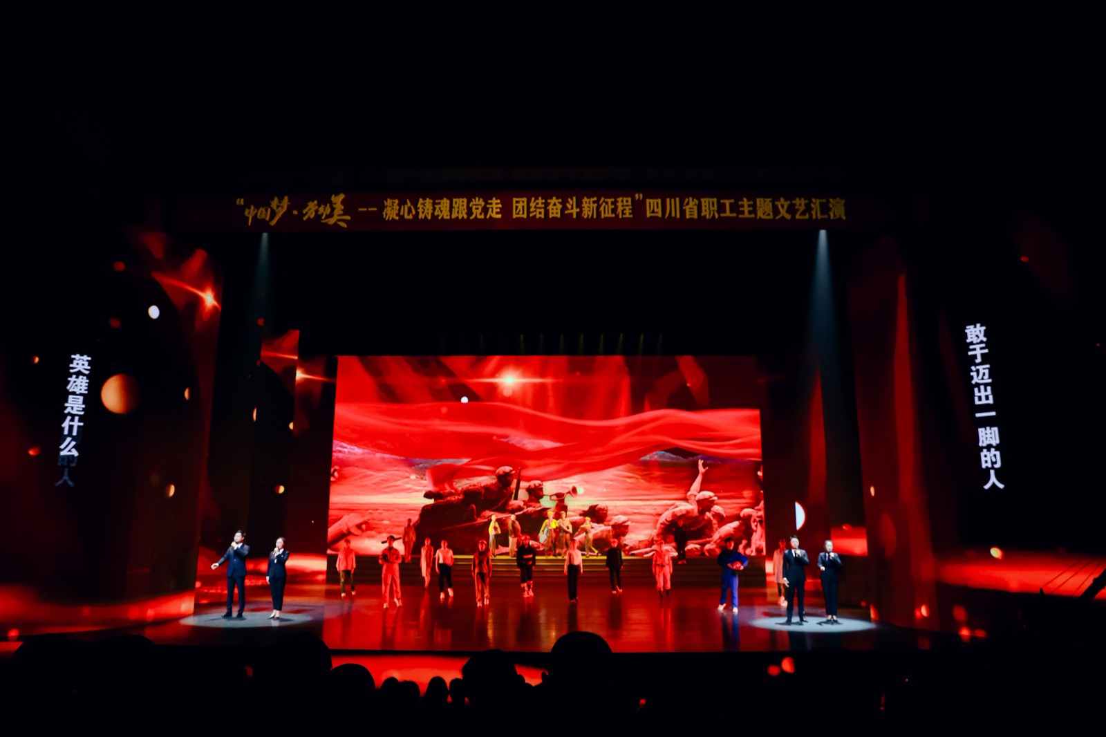 整場文藝匯演內(nèi)容豐富,形式多樣,主題鮮明,氣氛熱烈,通過《巴蜀情·建功新時代》《勞動美·奮進新征程》《中國夢·開啟新篇章》3個篇章,15個節(jié)目,90分鐘的精彩演繹,展示各行各業(yè)、各條戰(zhàn)線的廣大職工在崗位上砥礪奮進、開拓創(chuàng)新、逐夢前行,共同繪就四川奮斗新征程的火熱圖景,精彩的表演贏得了現(xiàn)場觀眾的陣陣掌聲,廣大職工也通過線上觀看的方式一睹這場視覺盛宴。