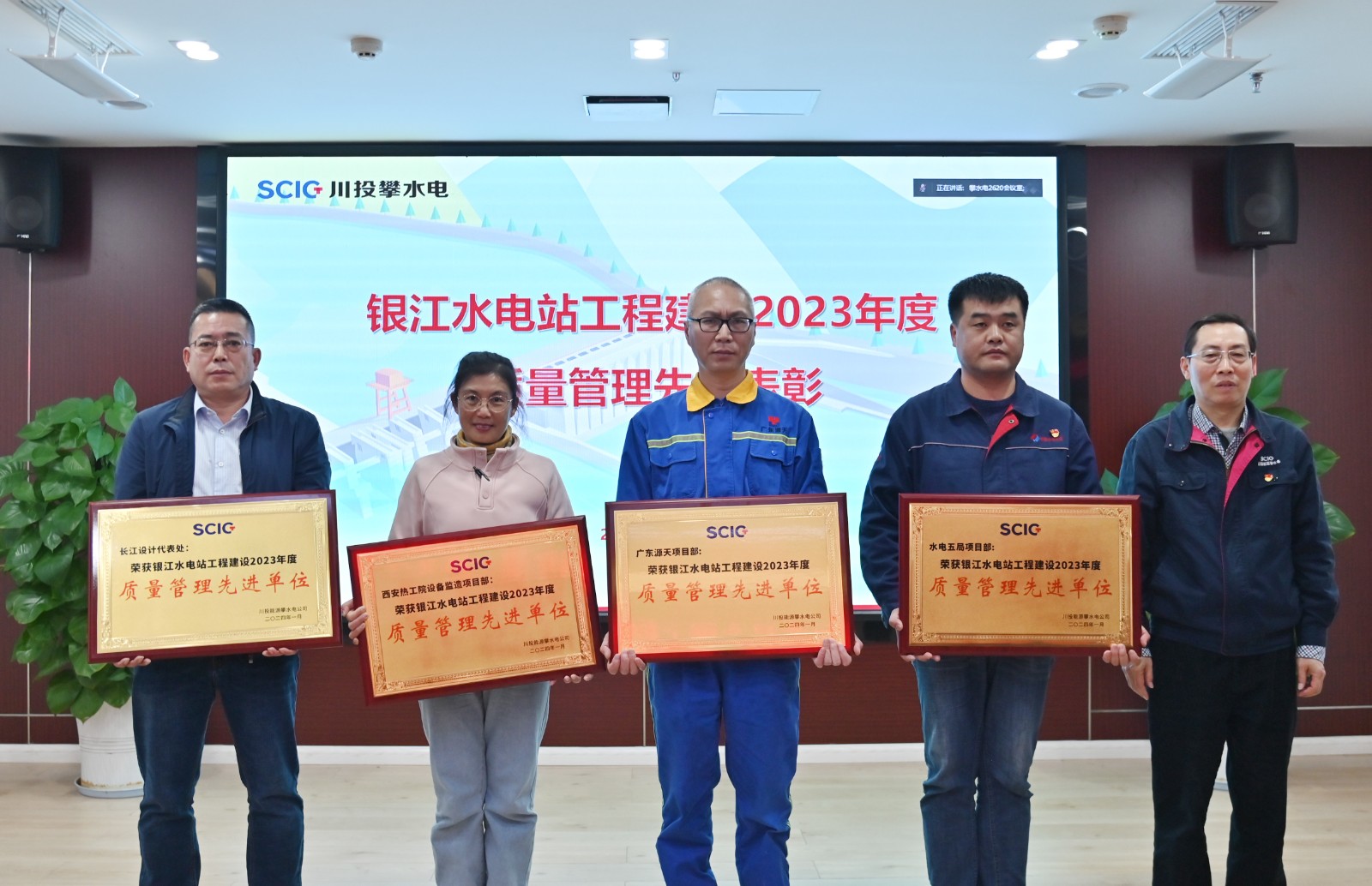會(huì)上,公司副總經(jīng)理唐伽宣讀了《關(guān)于表彰銀江水電站2023年度質(zhì)量管理先進(jìn)單位、先進(jìn)集體和先進(jìn)個(gè)人的通報(bào)》文件,徐孝剛向榮獲2023年度質(zhì)量管理先進(jìn)單位的長(zhǎng)江設(shè)計(jì)代表處、西安熱工院設(shè)備監(jiān)造項(xiàng)目部、水電五局項(xiàng)目部、廣東源天項(xiàng)目部頒發(fā)了獎(jiǎng)牌;公司黨總支副書(shū)記、董事會(huì)秘書(shū)、工會(huì)主席鄧勇,公司黨總支委員、紀(jì)檢小組長(zhǎng)楊銳向榮獲先進(jìn)集體的長(zhǎng)江設(shè)計(jì)代表處壩工專(zhuān)業(yè)組、貴陽(yáng)院監(jiān)理部土建工程管理部、西安熱工院設(shè)備監(jiān)造項(xiàng)目部駐哈電監(jiān)造站、水電七局項(xiàng)目部砂石工區(qū)、水電五局項(xiàng)目部土建三隊(duì)、廣東源天項(xiàng)目部主機(jī)班等13個(gè)集體頒發(fā)了獎(jiǎng)牌。徐孝剛向獲獎(jiǎng)的單位、集體及個(gè)人表示了祝賀,要求他們?cè)诮窈蟮馁|(zhì)量管理工作中發(fā)揮好先鋒模范帶頭作用,促進(jìn)各參建單位共同提高質(zhì)量管理水平,把銀江水電站建設(shè)成“精品工程、樣板工程、陽(yáng)光工程”。