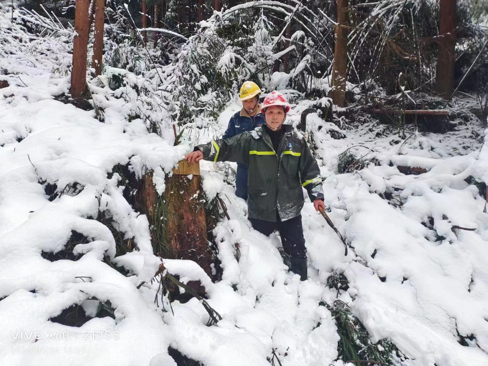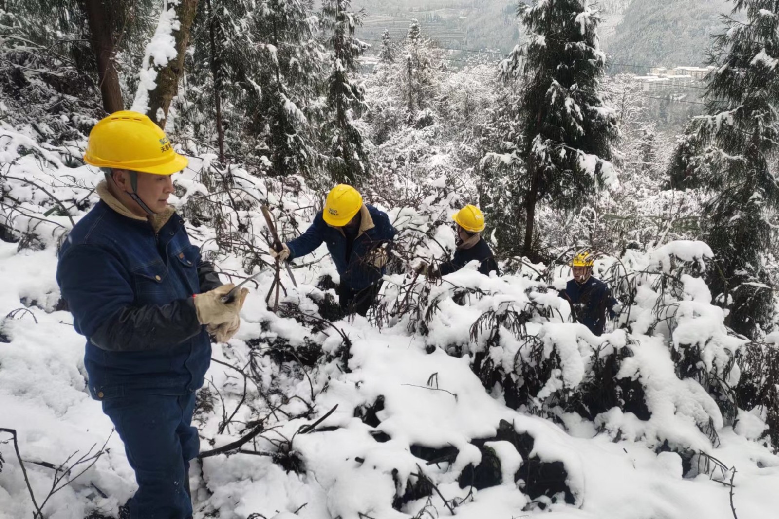 1月23日,天彭電力制定詳細(xì)的樹障清理計(jì)劃。巡線員手持砍刀,翻山越嶺,負(fù)重前行,踩著嘎吱作響的積雪,迎著刀割般的寒風(fēng),迅速開始對(duì)110kV鳳回線、10kV沙橋線、鳳通線等線路設(shè)備進(jìn)行巡查,對(duì)倒伏在線路的竹樹進(jìn)行“圍剿”,共清理樹枝、竹子共110余棵,現(xiàn)場(chǎng)巡線員盡管臉凍得通紅、手凍得僵硬、腳凍得麻木,仍有條不紊地開展工作,經(jīng)過一天的辛勤巡檢,線路和設(shè)備均運(yùn)行正常。