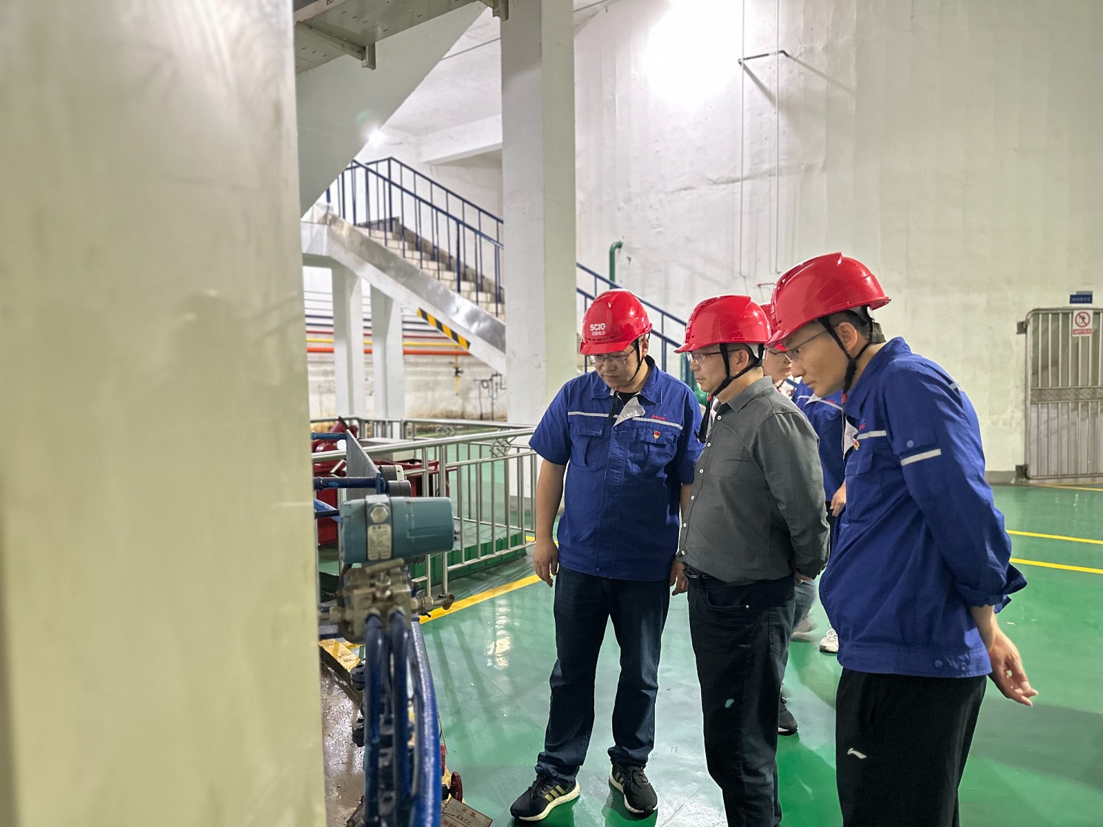 公司黨委副書記、總經(jīng)理蔡承德帶隊,實地察看玉田電廠大壩、廠房,重點對大壩水工建筑物運行、閘門啟閉設(shè)備試驗、備用柴油發(fā)電機啟停、左右岸壩肩滾石、消防系統(tǒng)的運行等進行檢查。