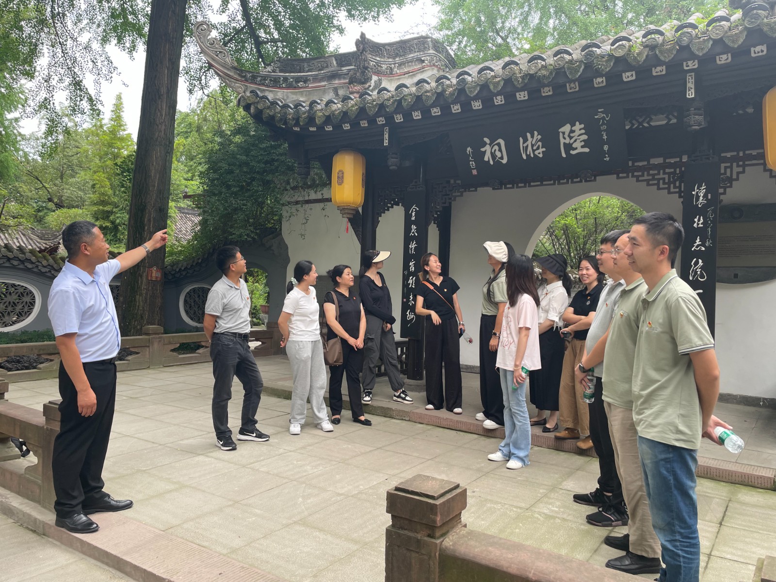最后,全體人員前往崇州罨畫池廉潔文化教育基地,參觀我國(guó)著名愛(ài)國(guó)詩(shī)人陸游祠堂、瞻仰陸游塑像、鑒賞陸游愛(ài)國(guó)詩(shī)詞書畫展、佇足放翁家訓(xùn)館學(xué)習(xí)優(yōu)秀家風(fēng)文化,支部書記王輝同志以《汲取中國(guó)傳統(tǒng)優(yōu)秀文化精髓涵養(yǎng)遵紀(jì)清廉新時(shí)代精神》為題給黨員上廉潔教育黨課。