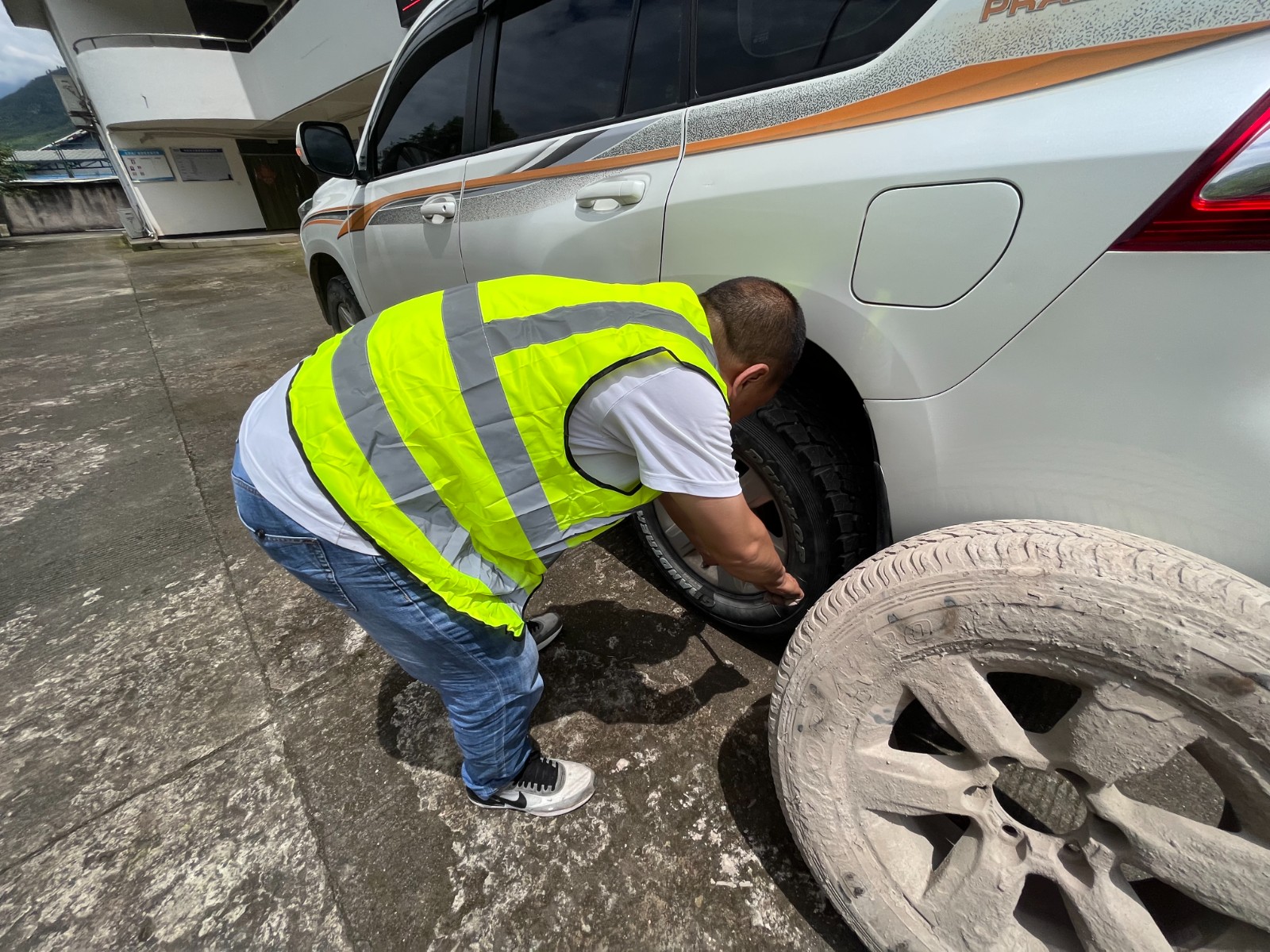 玉田電廠進(jìn)廠公路為鄉(xiāng)村水泥道和原始基坑路,路面窄、彎道多且存在駕駛視野盲區(qū),汛期雨后道路積水多、山上滾石現(xiàn)象時有發(fā)生,道路交通存在安全風(fēng)險隱患。為提高電廠駕駛員的應(yīng)急響應(yīng)能力,確保發(fā)生車輛爆胎等突發(fā)意外時能迅速有效處置,提高自救能力,近日,玉田電廠開展車輛爆胎應(yīng)急演練。