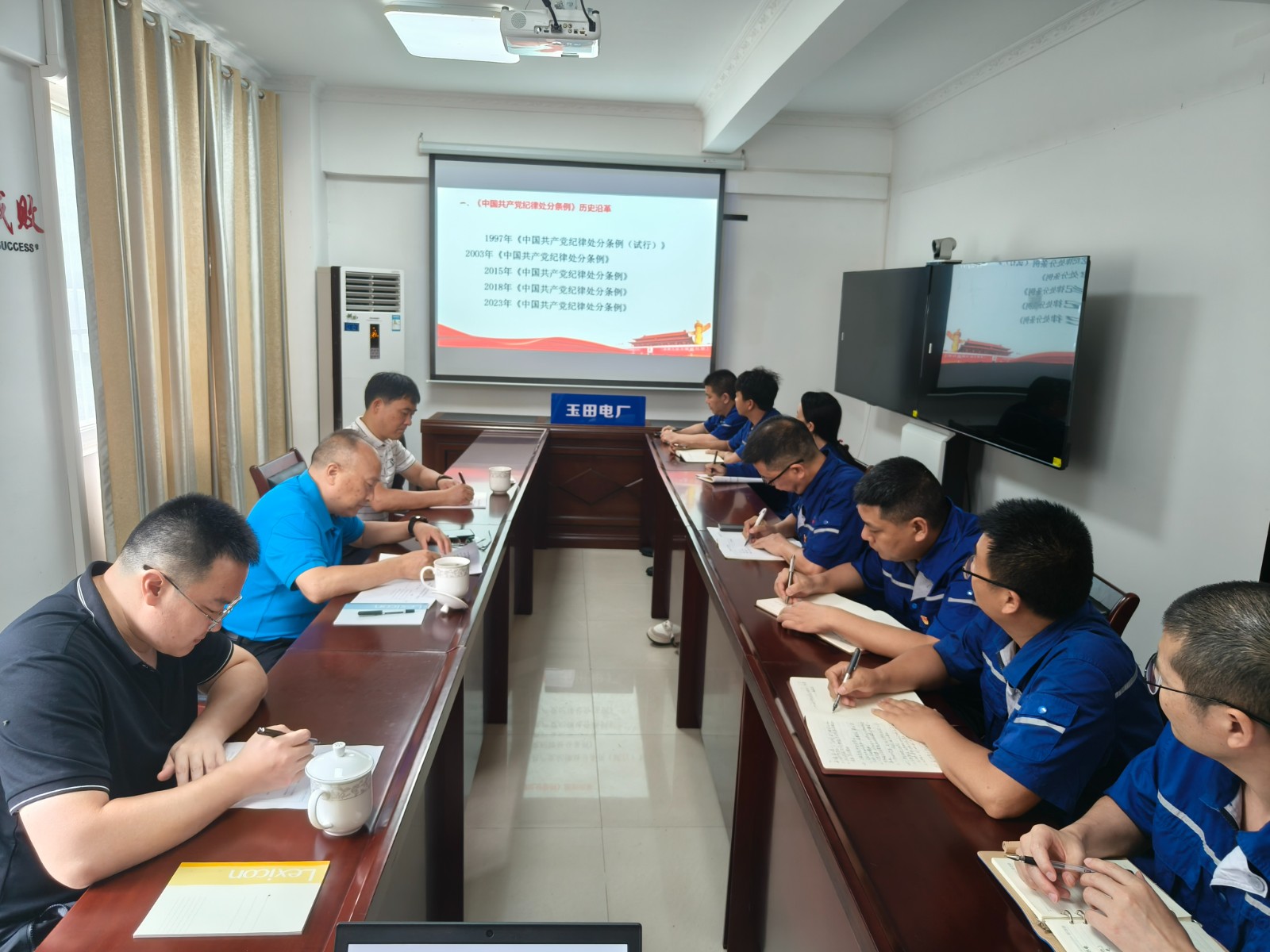 蔡承德從歷史沿革、修訂概要和條文解讀三個(gè)方面對(duì)新修訂的《中國(guó)共產(chǎn)黨紀(jì)律處分條例》進(jìn)行細(xì)致解讀。結(jié)合近期查處的國(guó)企違紀(jì)違法典型案例,蔡承德要求,玉田電廠全體黨員要牢固樹(shù)立黨規(guī)黨紀(jì)意識(shí),扛起政治責(zé)任,充分發(fā)揮黨員先鋒模范作用;要自覺(jué)修筑自律防線、設(shè)立篤行底線,常懷律己之心,常思貪欲之害;要嚴(yán)守工作紀(jì)律,嚴(yán)抓安全生產(chǎn),加大扭虧治虧力度,為公司的發(fā)展貢獻(xiàn)力量。