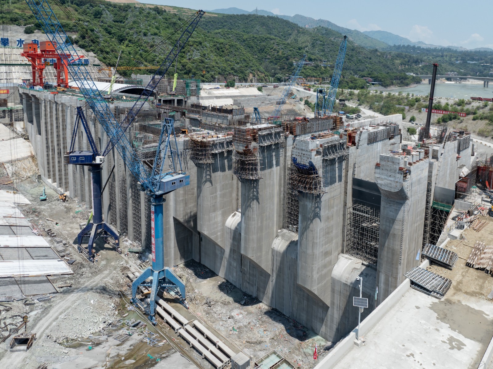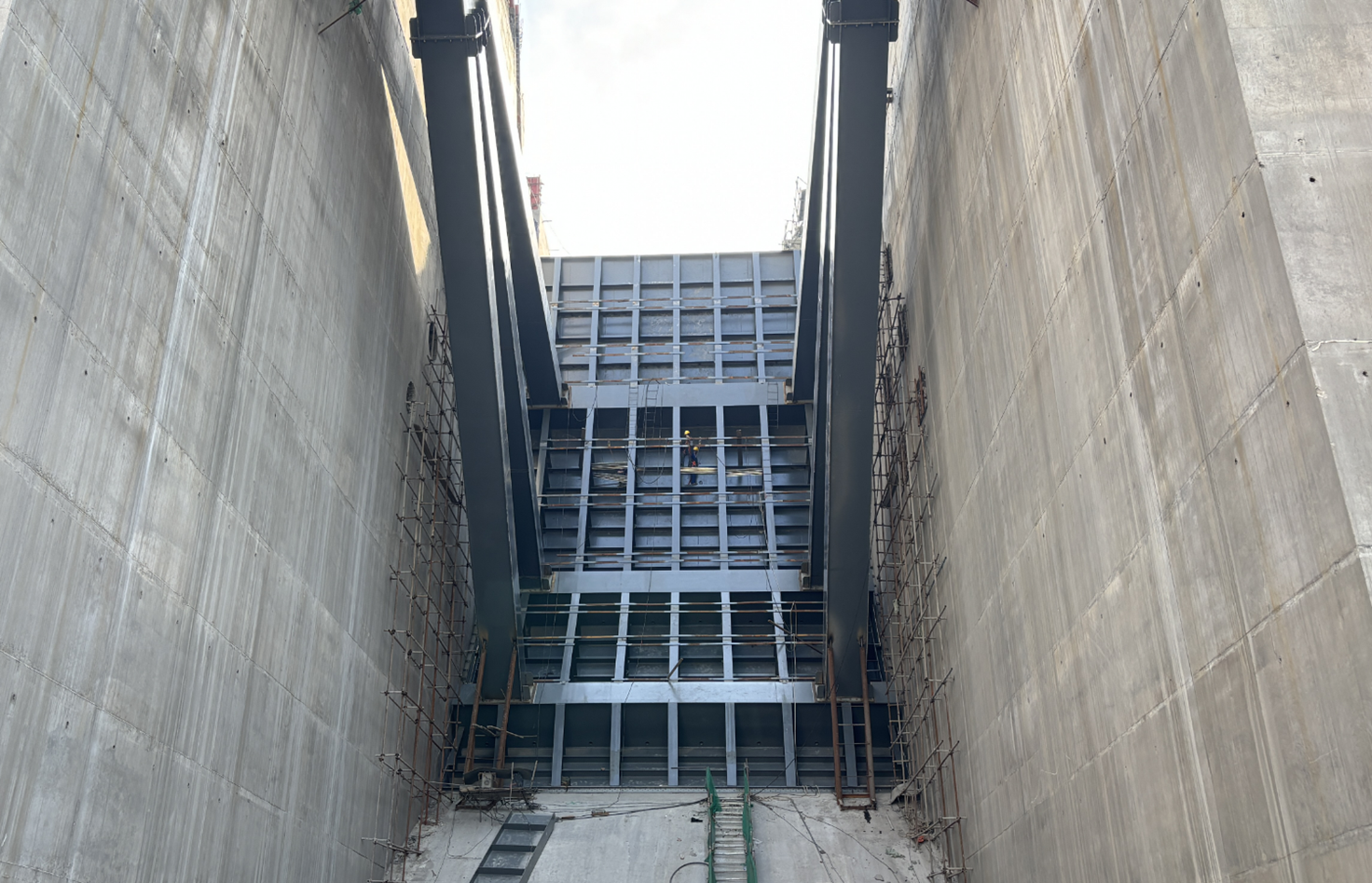 徐孝剛表示,金屬結(jié)構(gòu)安裝是實現(xiàn)工程下閘蓄水目標(biāo)的核心任務(wù),自7月下旬首節(jié)弧形工作門吊裝以來,在不到3個月的時間內(nèi),將要完成近萬噸的安裝工程量,工期緊、任務(wù)重、難度大,參建各方超前謀劃、提前部署,深入開展設(shè)計及施工優(yōu)化,多次專題研討安裝方案并組織專家論證,突破多項常規(guī)方法,采取鋼絞線提升裝置安裝尾水事故檢修門、臨時平臺配合汽車吊站位安裝弧形工作門、門槽安裝及其二期混凝土澆筑工序循環(huán)優(yōu)化等一系列超常規(guī)措施,大幅縮短了安裝工期,取得了階段性成果,希望各參建單位持續(xù)保持昂揚斗志、乘勢而上,協(xié)同并進(jìn)、合力攻堅,為全面實現(xiàn)工程建設(shè)目標(biāo)不懈奮斗。