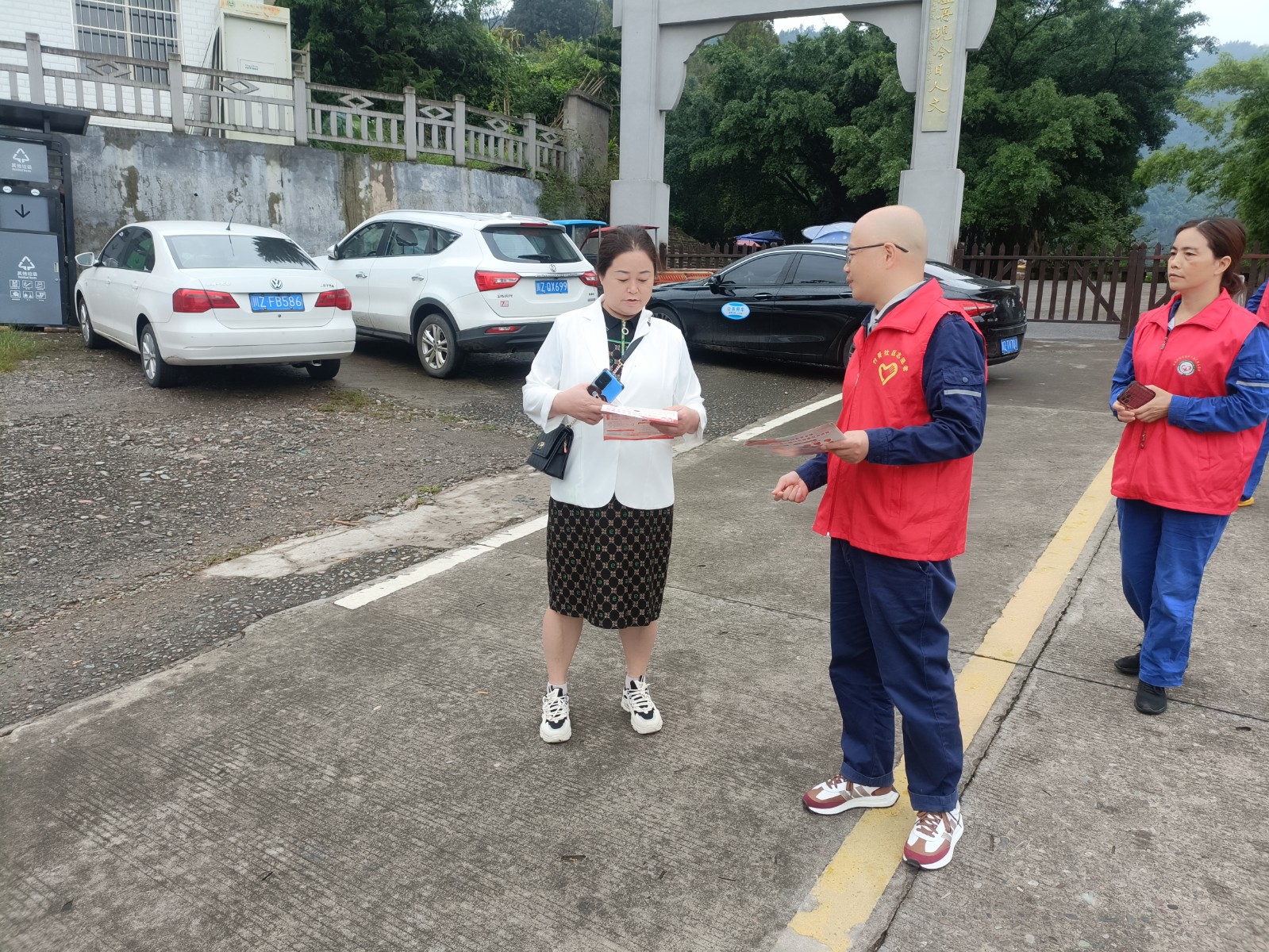 在槽漁灘風(fēng)景區(qū)入口,面對(duì)到來(lái)的游客,支部黨員張華耐心地為游客提供景區(qū)景點(diǎn)、游覽路線、交通信息等咨詢服務(wù),確保游客能夠順利游覽景區(qū)。黨員鄭健在景區(qū)停車場(chǎng)區(qū)域,協(xié)助景區(qū)工作人員維持交通秩序,引導(dǎo)游客有序停車,確保游客安全與景區(qū)秩序平穩(wěn)。黨員何曉紅、發(fā)展對(duì)象楊杰主動(dòng)向游客普及國(guó)家安全與森林防火知識(shí),引導(dǎo)廣大游客自覺維護(hù)國(guó)家安全,自覺遵守森林防火規(guī)定。