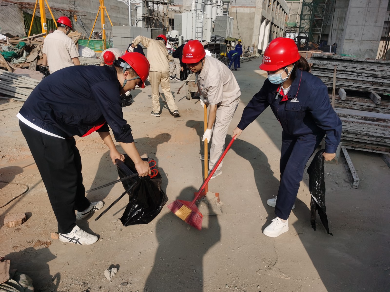 活動開始前,安全環(huán)保部經(jīng)理唐云宏從安全生產(chǎn)應(yīng)急知識、工地安全防護(hù)和注意事項(xiàng)方面進(jìn)行了簡要培訓(xùn),提醒、督促大家在施工現(xiàn)場一定要做到“抬頭看天,低頭看路”,認(rèn)真做好安全防護(hù),隨時(shí)保持安全警惕性。隨后,各支部黨員同志、志愿者們斗志昂揚(yáng)、團(tuán)結(jié)協(xié)作,分為三個(gè)小組開展工地清掃、整治衛(wèi)生死角活動,大家手持垃圾袋、掃帚、火鉗等工具,對壩頂、GIS樓、上游導(dǎo)流明渠、鋼筋場等區(qū)域進(jìn)行了集中清理整治,共同營造了干凈整潔的施工環(huán)境。