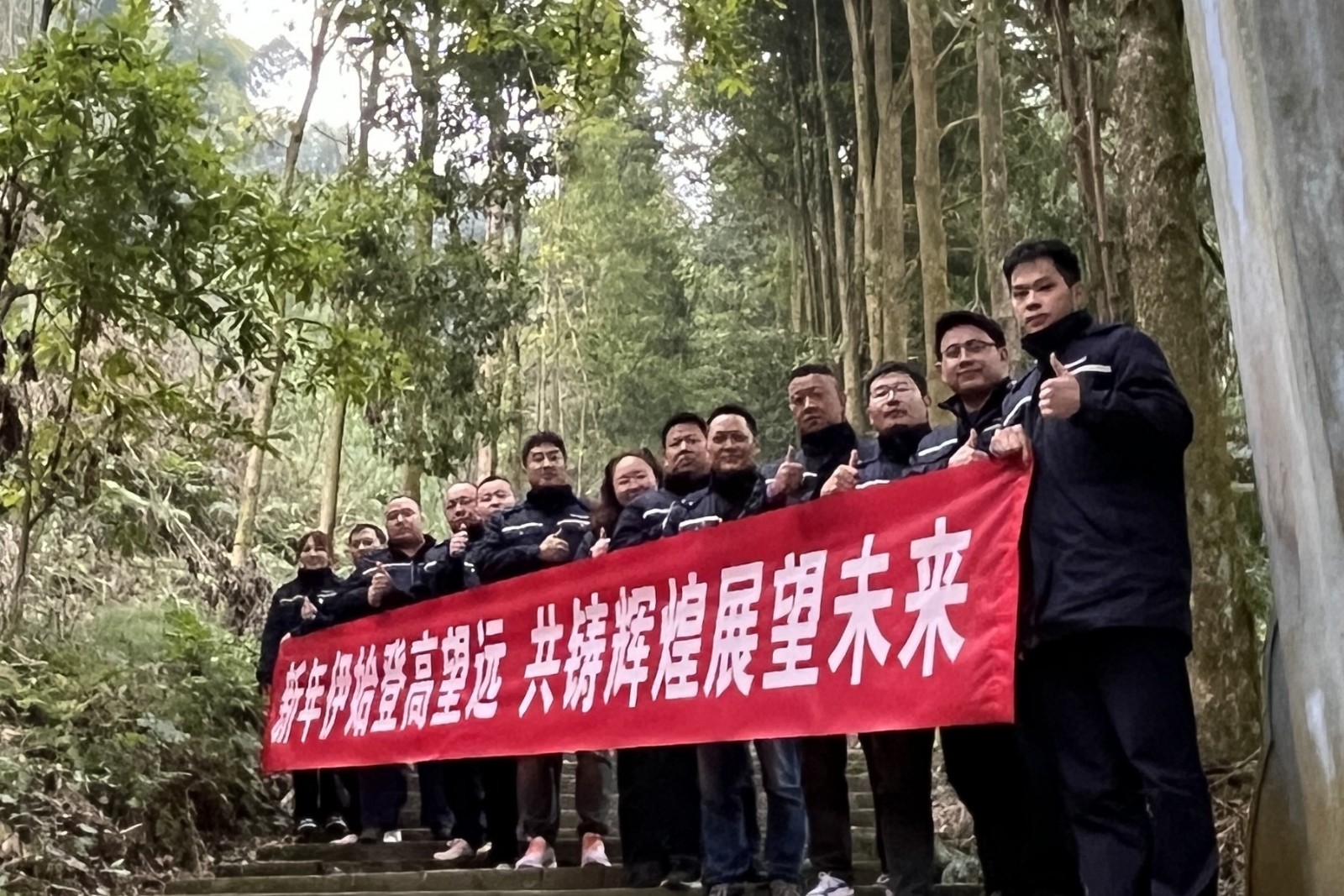 深冬的山谷,青山綠水,風(fēng)光獨(dú)好。全體人員在腳基坪黨支部書記、廠長趙兵的帶領(lǐng)下,精神抖擻地前往文筆山。登山過程中,大家互相鼓勵(lì)、互相幫助,展現(xiàn)了良好的團(tuán)隊(duì)協(xié)作精神。在山頂,由黨員李彥瑾領(lǐng)誦,全體人員齊聲誦讀《七律?長征》,既是對紅軍長征歷史的回顧和緬懷,也是對革命精神的傳承和弘揚(yáng)。