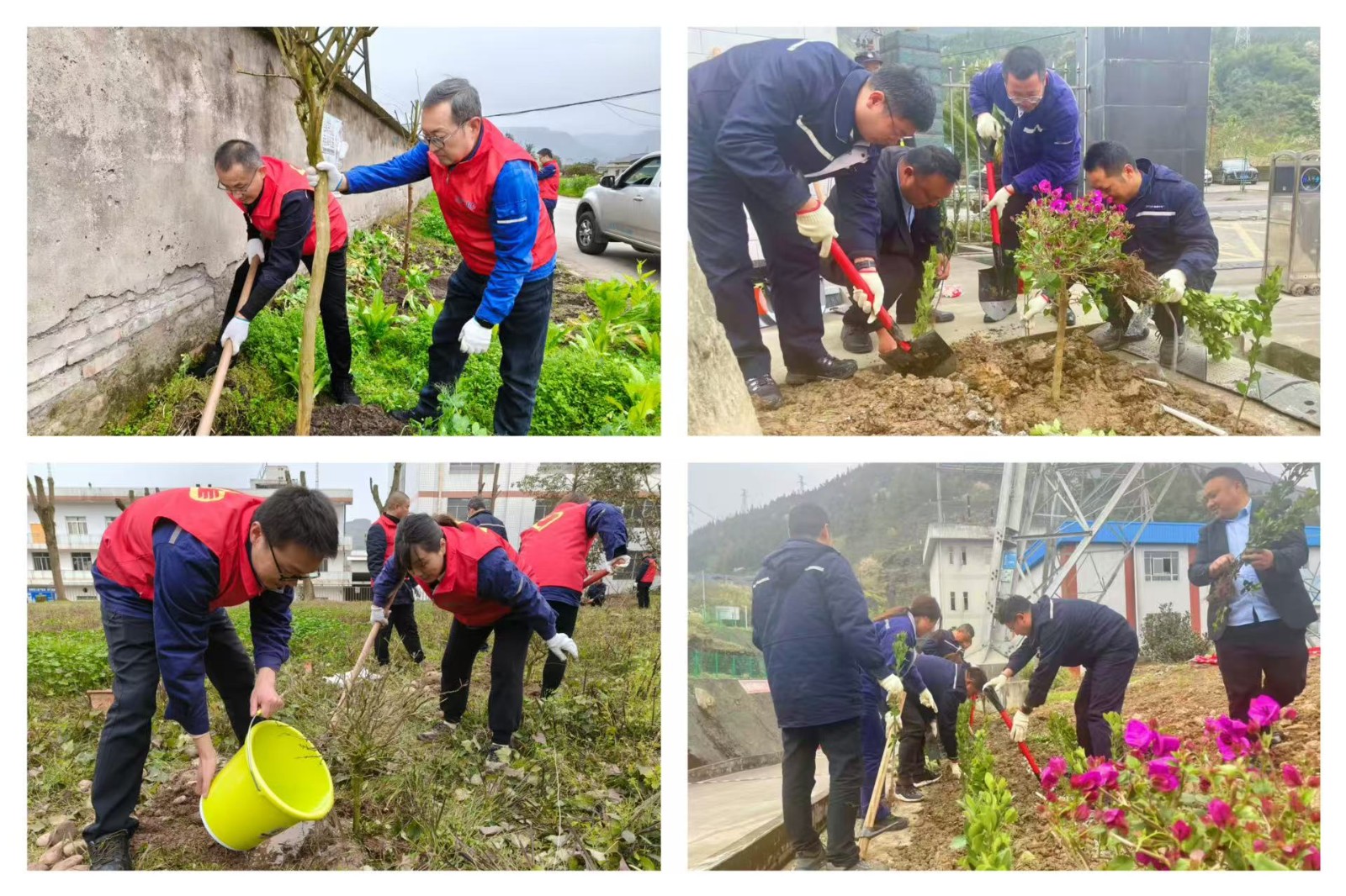活動當(dāng)天,高奉山電廠、腳基坪電廠全體員工積極參與,大家分工協(xié)作,干勁十足。活動現(xiàn)場,員工們揮鍬鏟土、扶苗填坑、澆水灌溉,每一道工序都認真細致,經(jīng)過一上午的辛勤勞動,電廠周邊的空地上種下了一排排整齊的樹苗,為廠區(qū)增添了一片新綠。同時,槽漁灘公司黨員服務(wù)群眾先鋒隊在青衣江江畔開展垃圾清理志愿服務(wù)。